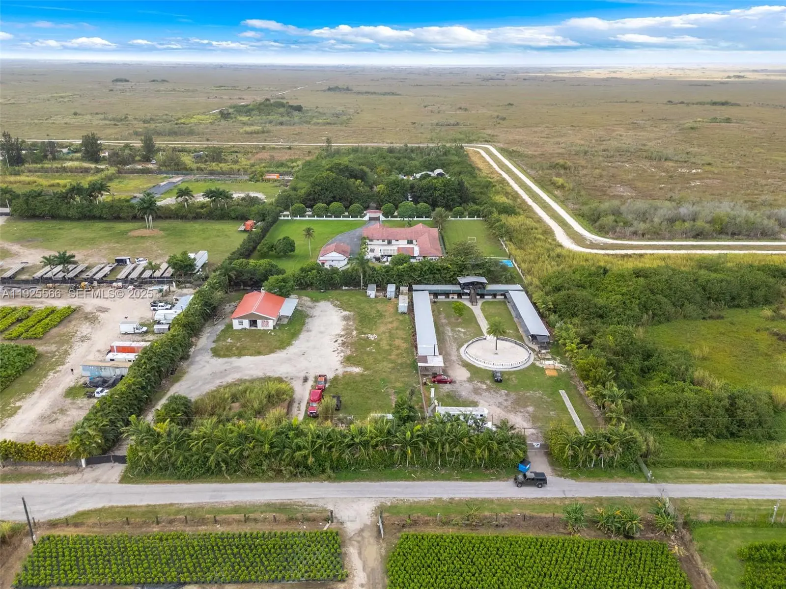 Unique opportunity to acquire a fully operational agricultural nursery situated on 4.70 acres in unincorporated Miami-Dade County. This offering includes both the land and the established business, Nursery Vega Park LLC, actively operating since 2016 under agricultural classification and in compliance with County and State requirements. Ownership has been in place for approximately 10 years. The property features a turnkey agricultural setup with multiple permitted improvements, including designated growing areas, storage and support structures, internal access roads, and site infrastructure supporting nursery operations. A current Class IV Wetland Permit, valid through 2028, authorizes approved nursery use and site work, providing operational continuity and security. An active nursery registration with the Florida Department of Agriculture is in place, allowing the buyer to continue operations seamlessly. Agricultural tax classification (AG Exempt) adds additional value and potential tax benefits. Zoned GU (Interim District), the land offers flexibility for agricultural use, nursery expansion, or long-term investment. Located on SW 205th Avenue, the property provides convenient access to major roadways while maintaining privacy and an agricultural setting. Sale includes business, land, and existing improvements. Ideal for owner-operators or investors seeking an established agricultural asset with immediate usability and long-term potential in Miami-Dade.