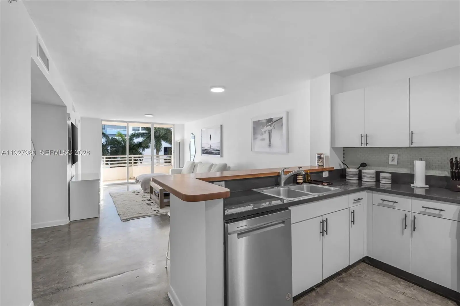 Welcome to this light-filled 2BD/2BA residence in the heart of Miami Beach, offering tranquil bay views and effortless indoor-outdoor living. The open-concept layout features polished concrete floors, a modern kitchen with stainless steel appliances and breakfast bar, and a spacious living and dining area ideal for entertaining. Step onto the private balcony to enjoy lush palm views and serene surroundings. Both bedrooms are generously sized, including a primary suite with ample closet space and en-suite bath. The building offers a pool, parking, and a prime location just moments from Sunset Harbour, Lincoln Road, beaches, dining, and shopping. A perfect full-time residence, second home, or investment opportunity in one of Miami Beach’s most desirable neighborhoods.