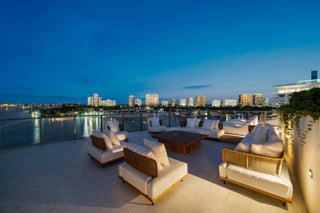 Step Inside With Me! Debuting this bayfront penthouse at the newly constructed Onda Residences in Bay Harbor Islands. Offering a boutique lifestyle, this two-story sky home showcases 5 bedrooms + office and media room across 5,073 SF of interiors per developer floor plan. A private foyer opens to the sunlit grand living room, where floor-to-ceiling glass frame sweeping blue water views. The Miele-appointed kitchen features an expansive eat-in island accented by white oak and a bright dining area. The spacious primary suite showcases a marble-draped bath with a spacious dressing room including a vanity area. Outdoors, find 2,126 SF of terraces crowned by a private rooftop plunge pool + sun deck ideal for al fresco entertaining. Privacy, panoramic vistas, & resort-caliber amenities define this exceptional Bay Harbor Islands retreat—just minutes from Bal Harbour Shops. Inquire for dock availability.