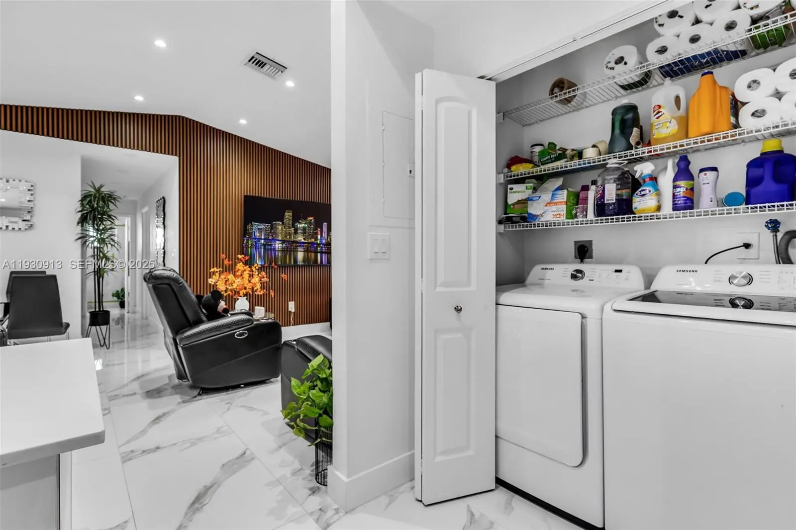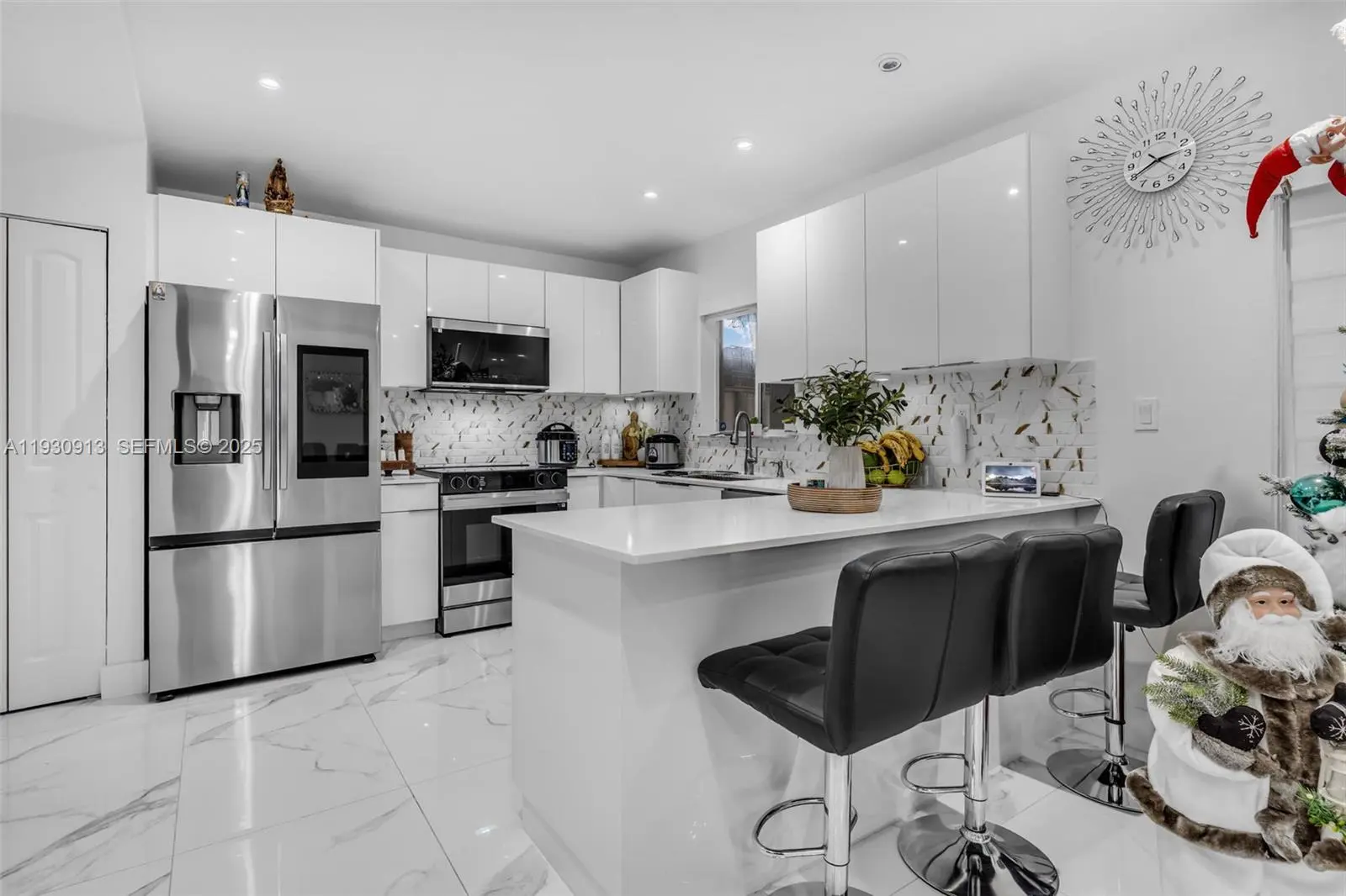 Beautifully remodeled 3/2B Home with high ceilings, modern lighting, and porcelain floors. Upgraded kitchen with quartz countertops and stainless steel appliances. Updated bathrooms with frameless glass showers. Impact windows/doors. Covered terrace perfect for hosting friends or relaxing in style. Washer and dryer included. No HOA. Great neighborhood. Easy access to major roads, shopping, dining, and schools. Just 1st month and one security deposit. Move-in ready!