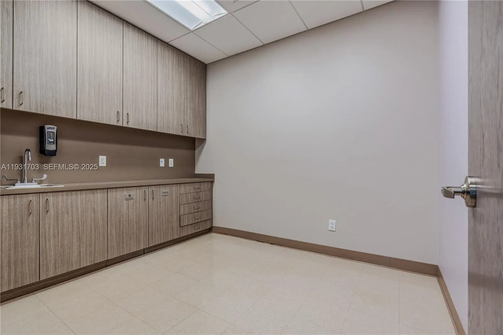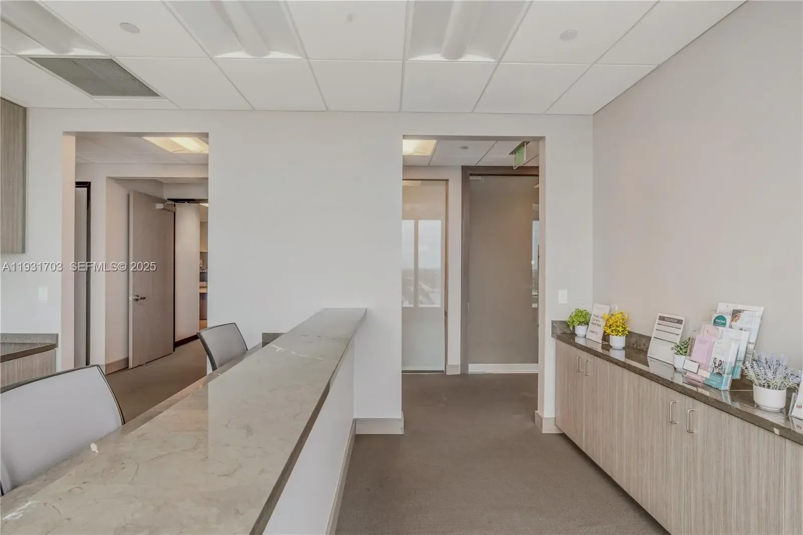 The suite offers a highly efficient, patient-centric layout featuring numerous private exam rooms, physician offices, nurse stations, and procedure-ready rooms, allowing a new occupant to step in with minimal modifications. A centrally positioned reception and expansive waiting area create a welcoming first impression, while the thoughtfully designed internal layout promotes seamless patient flow and operational efficiency. Complementing the clinical areas are well-appointed support spaces, including business administration offices, patient and staff restrooms, a staff lounge, and dedicated patient check-in and check-out stations. Designed to support a multi-provider environment, the space is well-suited for primary care, specialty practices, outpatient services, or a consolidated medical group.