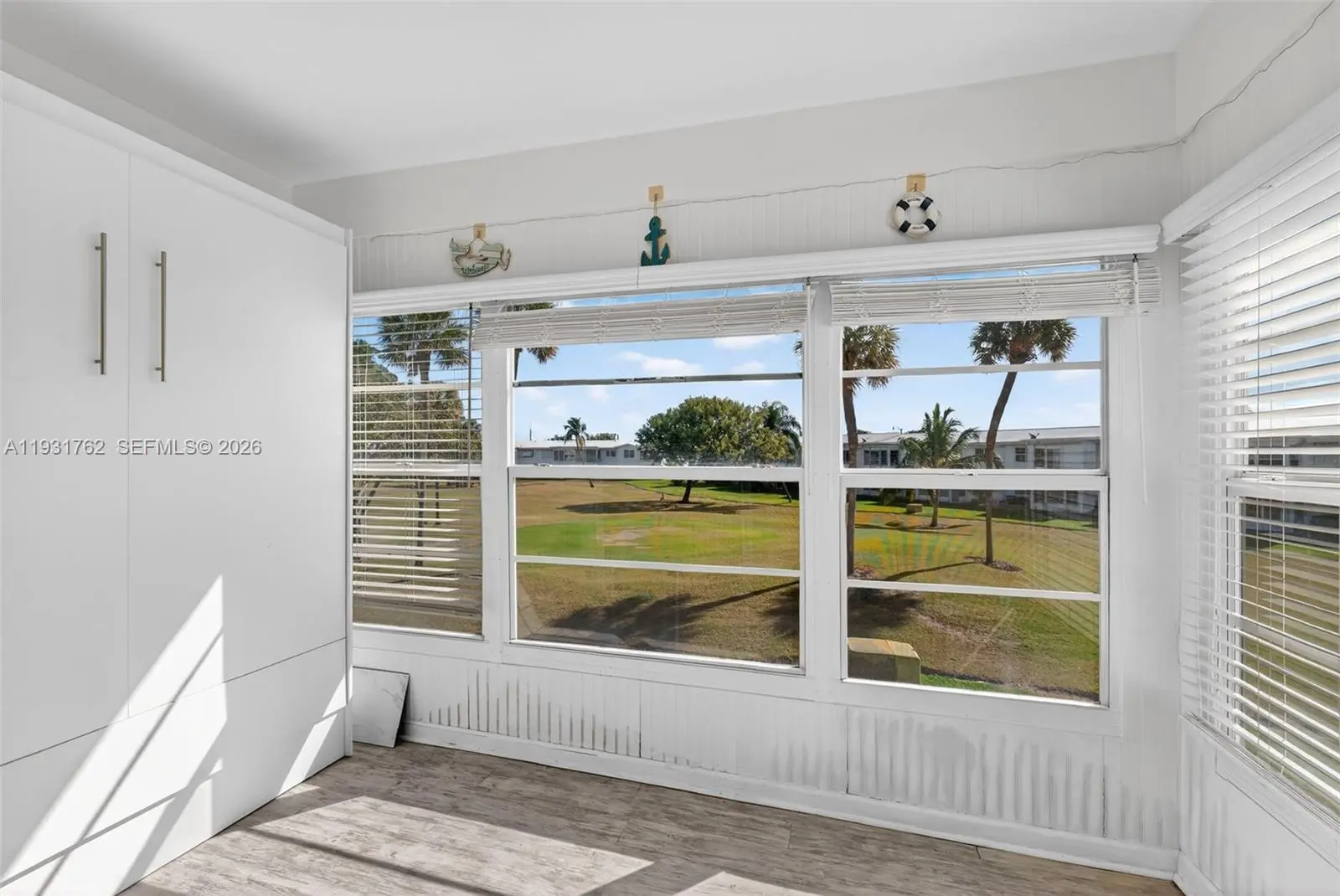 Beautiful unit with 1 bedroom & 1 bathroom, directly on the golf course in Leisureville, Pompano. Enjoy golf course living in this HOPA-verified condo with sweeping fairway views of a 9-hole, par-3 course. The Florida room features a Murphy bed, offering ideal flexibility for your guests to stay the night. The newly remodeled kitchen boasts modern cabinetry extended to the ceiling with soft-close drawers,. impact windows for added peace of mind. New vinyl flooring flows through the main living areas, with tile in the bedroom. Offered fully furnished and turnkey, this move-in-ready residence allows you to relax on the balcony (Florida room) overlooking the golf course. Enjoy & play free golf as often as you like. Located in a well-maintained 55+ community with excellent financials, Leisureville offers two heated pools, two clubhouses, courtesy bus service, community room, on-site management, walking paths, BBQ areas, ping pong, and shuffleboard. The land is fully paid with no land or recreation lease. The building has reserves, a newer roof, and was recently tented. A small pet is allowed, there are no assessments, and the location is just minutes from Pompano Beach. WOW! This is a must see!