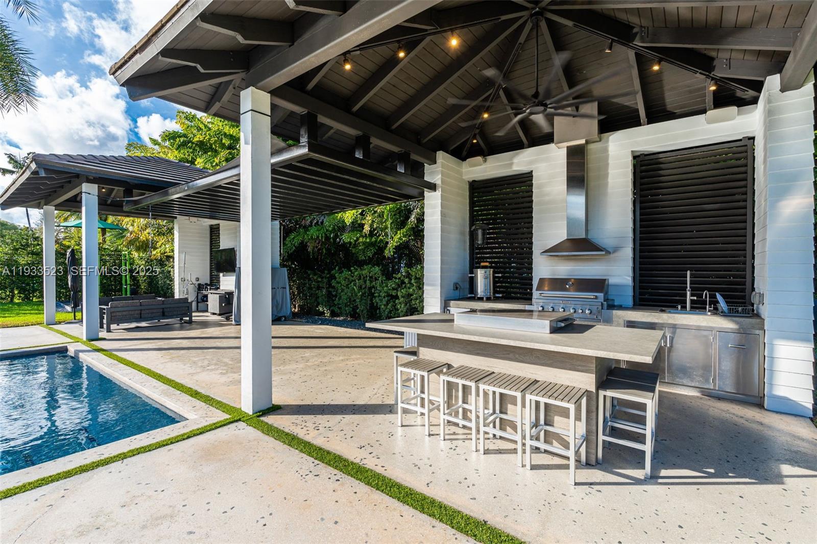 Upon entry, a breathtaking resort-style pool with Bali-inspired cabanas creates an Aman-like ambiance and seamless indoor–outdoor living. Located in the heart of South Miami, within the exclusive Sunset Oak Estates enclave of just six residences, this home defines modern luxury. This rare, fully integrated smart home, designed by a top architect, features massive 16-foot ceilings in the main living area, energy generators, a dedicated outdoor gym, and a fully equipped outdoor kitchen with BBQ and teppanyaki. The 4-bedroom, 4.5-bathroom residence offers refined craftsmanship, high-end finishes, abundant natural light, and exceptional entertaining spaces. Ideally situated near top-rated schools, dining, shopping, and everyday conveniences, this is a rare opportunity for private, resort-style living.
