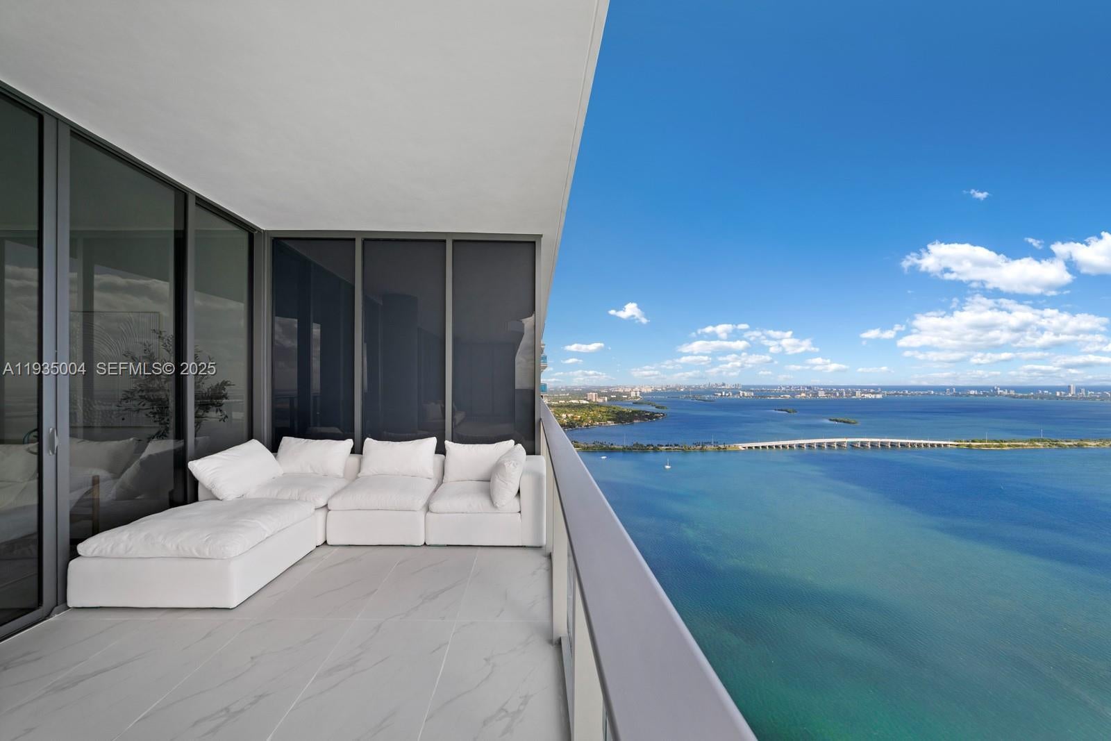 Rare 59th-floor penthouse at Aria Reserve South featuring a private 3-car garage and staff suite with full bath. This 2025, fully finished residence offers panoramic views of Biscayne Bay, the Atlantic Ocean, and Miami skyline through 11 ft floor-to-ceiling impact glass. Private elevator entry to your foyer with no shared hallways. Enjoy resort-level amenities surrounded by lush landscaping: pools, tennis, fitness center, spa, kids splash pad, dog park, theater, and more.