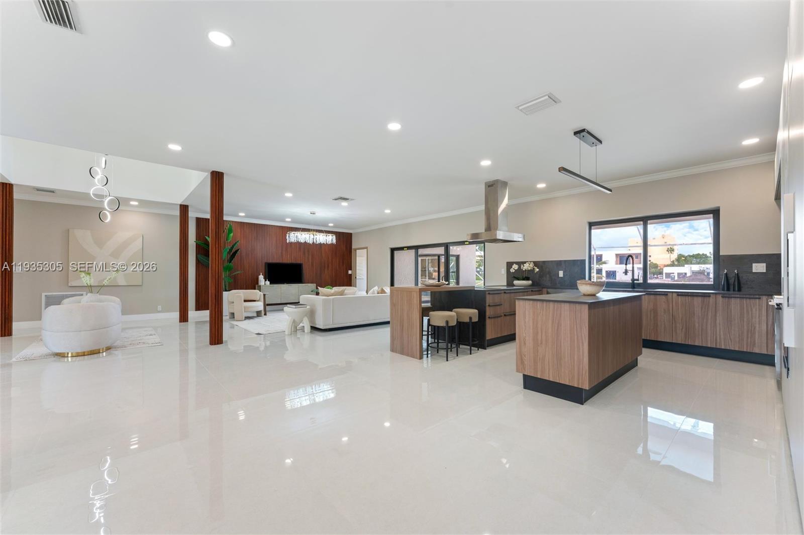 This beautifully reimagined one story lakefront home sits on an oversized 0.38 acre lot and has been taken down to the studs and rebuilt with intention, quality, and timeless style. Featuring 5 bedrooms and 4.5 bathrooms, the home feels brand new with a full renovation that includes a new roof, full impact windows and doors, new flooring throughout, and high end finishes at every turn, including a high-end Italian kitchen with premium Veneta Cucine cabinetry, Dekton countertops, and new luxury appliances. The thoughtfully designed layout blends elegance with everyday comfort. Outside, a circular concrete driveway accented with turf creates a strong first impression, while the screened pool and patio with an additional spa and sauna overlook tranquil lake views ideal for relaxed outdoor living. A two car garage and new driveway complete the property. With new everything and no detail overlooked, this move in ready lakefront home offers a rare opportunity to enjoy modern living on a generous lot in a truly turnkey setting.