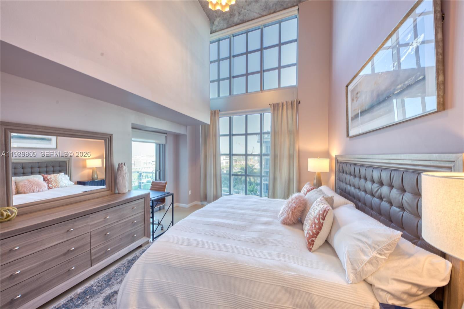 Stunning and rare 2BD/2BA apartment featuring 20-ft ceilings in prestigious Midtown Miami. This home offers an open floor plan, a large terrace perfect for entertaining, a granite kitchen, tile floors, and stainless steel appliances. Only two units per floor. Additional features include an updated full-size washer and dryer, floor-to-ceiling impact glass sliders, upgraded bathrooms, and much more. Building amenities include 24-hour security, concierge service, fitness center, heated pool, sauna, Jacuzzi, and business center. Centrally located in Midtown Miami—just a 10-minute drive to South Beach and Miami International Airport, and a short walk to the Design District to the north and Wynwood Arts District to the south. Furniture is available.