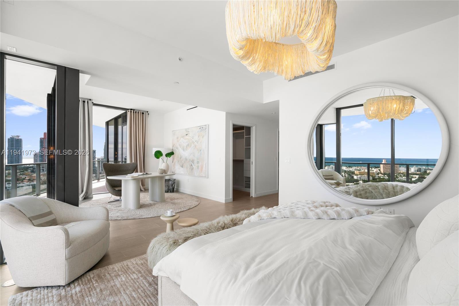 Perfectly positioned on the 21st floor, this brand-new, never-lived-in, fully furnished expansive residence is comprised of two units (2101/02) seamlessly combined by the developer, creating a generous and well-proportioned living space. The home offers an exceptional balance of elevation, views, and livable interior space. With a floor level that many buyers consider ideal, the residence captures open vistas and enhanced privacy while remaining competitively priced within the building, making it one of the strongest value propositions currently available at Five Park Miami Beach.The residence includes two assigned garage parking spaces, valet parking services, and access to the Beach Club, completing an exceptional lifestyle offering.