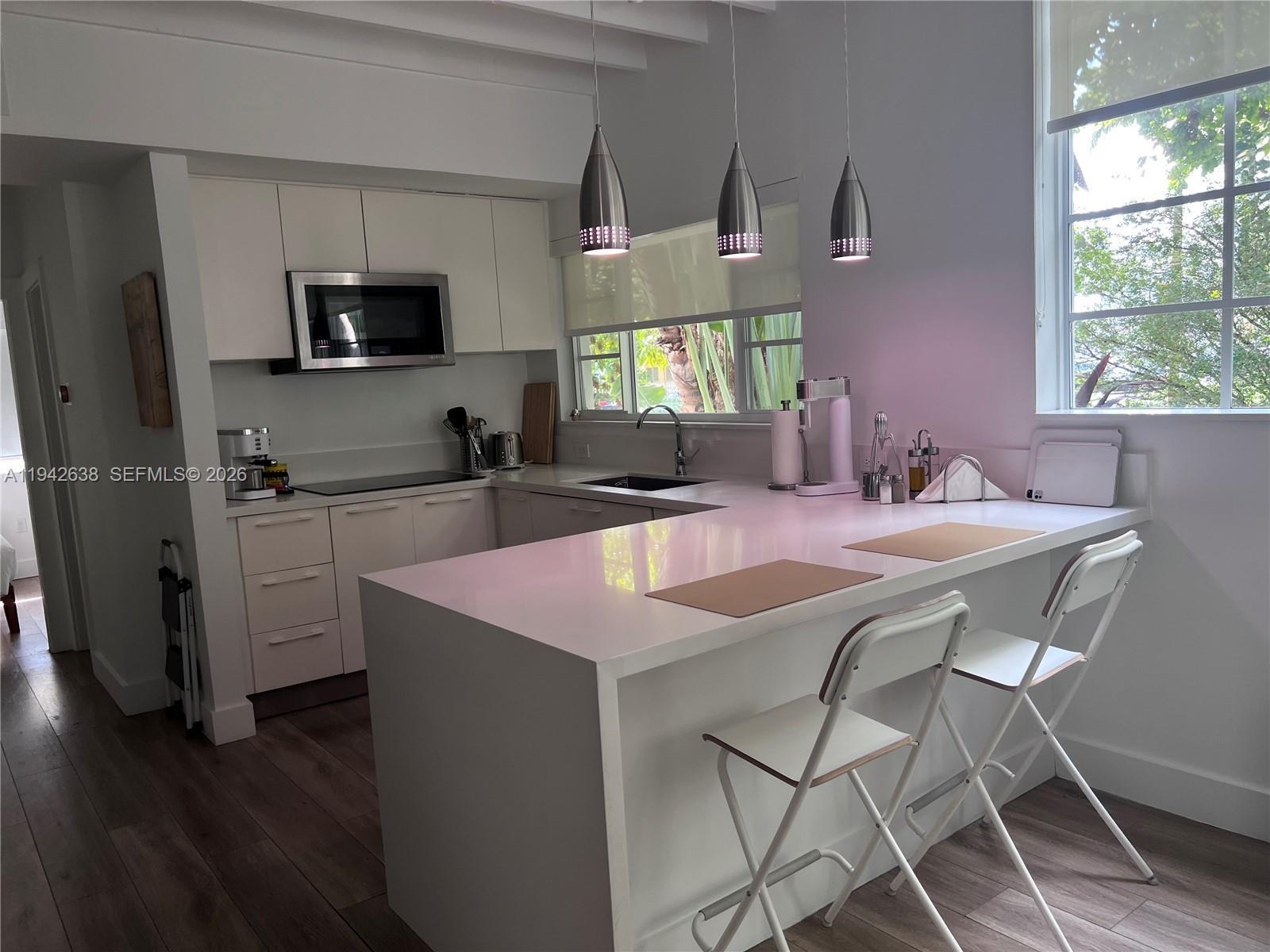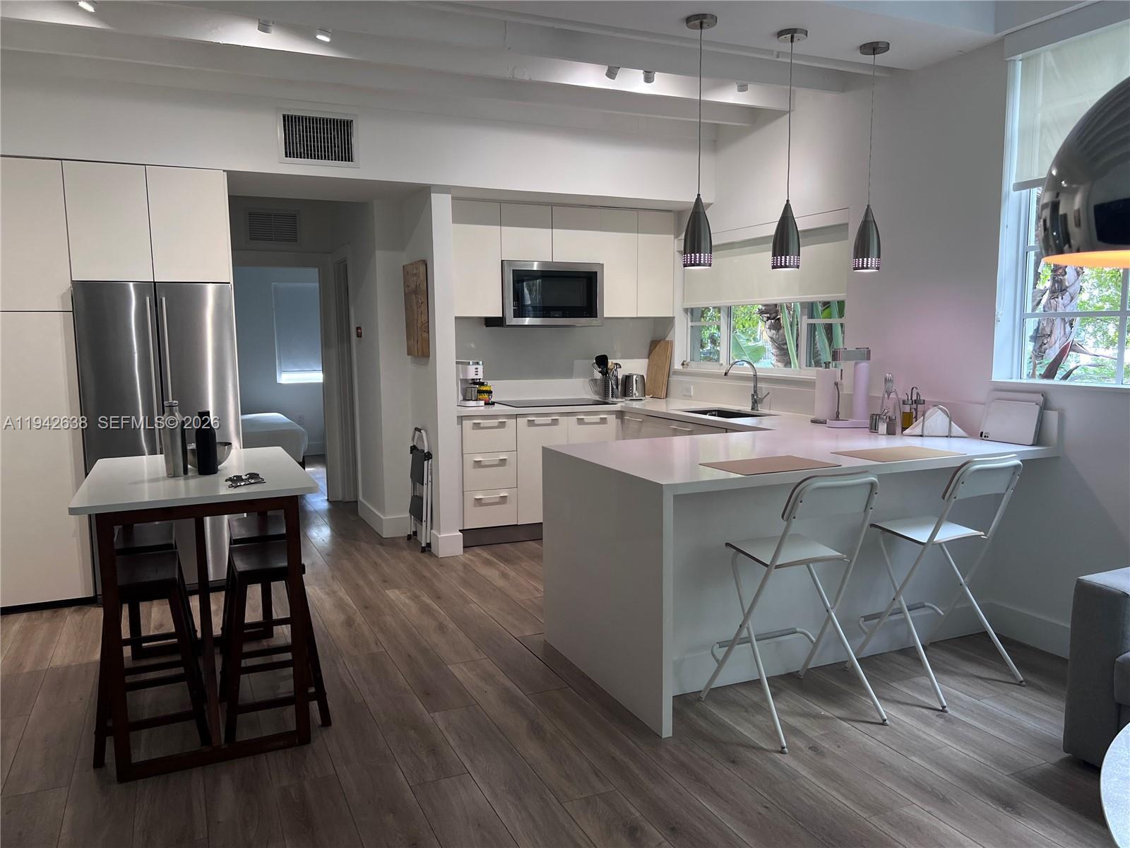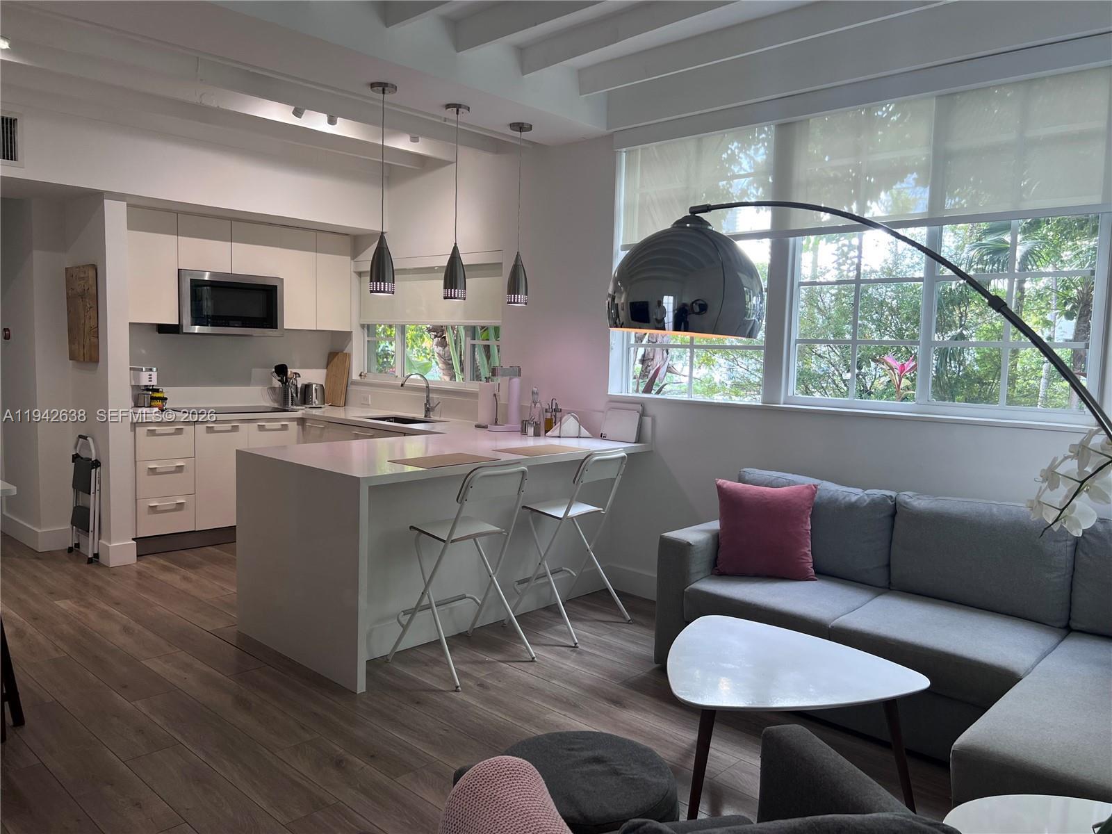 Beautiful apartment nestled in the amazing Meridian ave among beautiful greenery. This apartment can be rented with or without furniture. This is a must see, quiet building only 8 units. Feels like you are not on the beach, but yet so close to it.