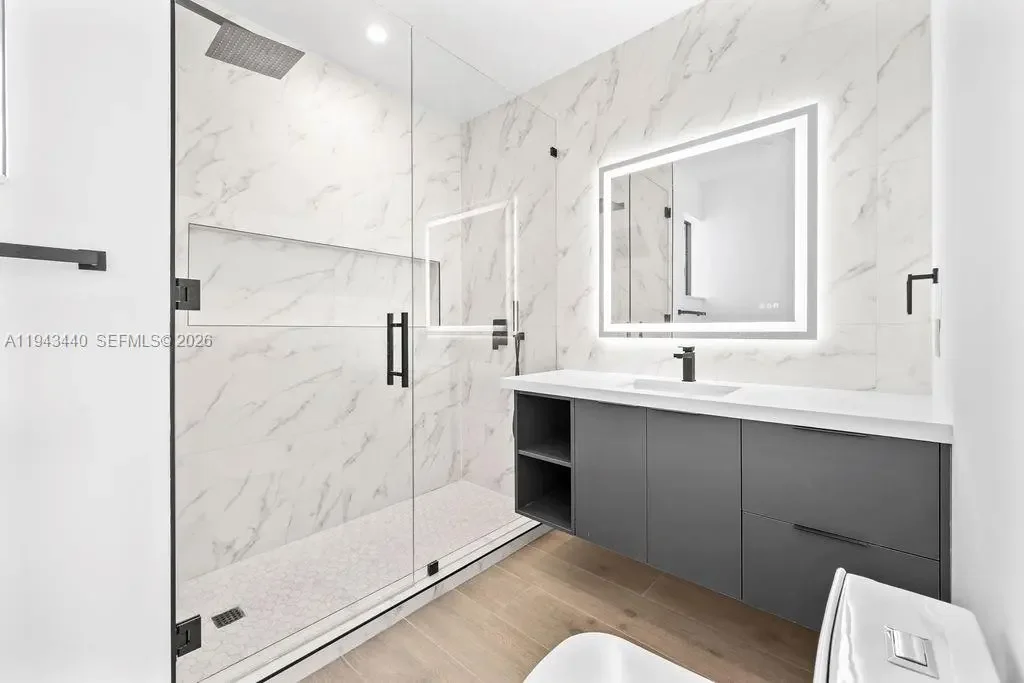 Exceptional new construction luxury townhome in the heart of Lake Ridge / East Fort Lauderdale. Final release—the last opportunity to own one of only four custom-built residences in one of Fort Lauderdale’s most desirable neighborhoods. Prime location just minutes to the beach, Las Olas Boulevard, and Downtown Fort Lauderdale. This architecturally striking home offers approx. 2,800 SF under air and showcases elevated modern design with top-tier finishes throughout. Interiors feature large-format Italian porcelain tile, a show-stopping porcelain chef’s kitchen with seamless custom cabinetry and built-in JennAir appliances, and a dramatic floating staircase that anchors the space. Designed for today’s lifestyle, the residence includes a first-floor bedroom, private balconies off every bedroom, expansive impact glass sliding doors, and a rare 2-car garage—an increasingly scarce feature in East Fort Lauderdale. The outdoor living experience rivals single-family homes, offering a private resort-style pool, summer kitchen, and a true usable backyard. Unique to this home is a private wellness retreat complete with sauna and cold plunge. Smart-home features include a pre-wired 3-zone audio system, security camera system, Ring doorbell, and Nest thermostat. Nothing compares at this price point in Fort Lauderdale. Ultra-rare product. Premium location. Limited availability—this home will move quickly.