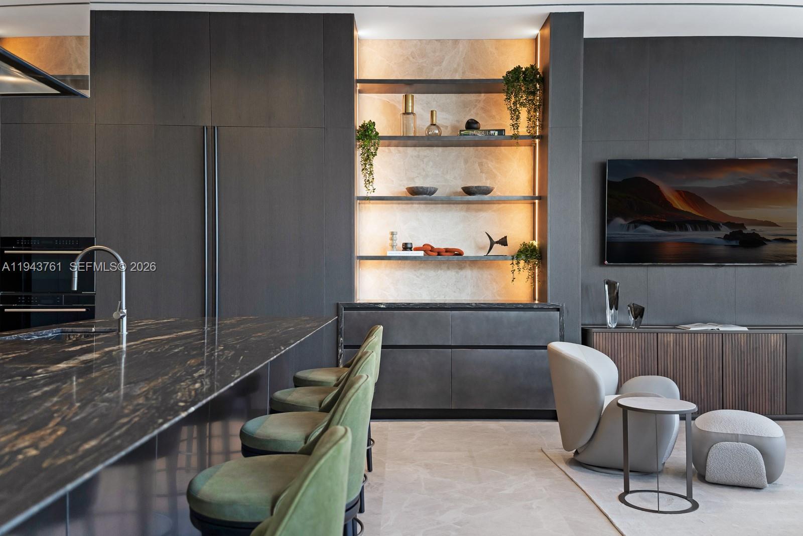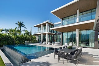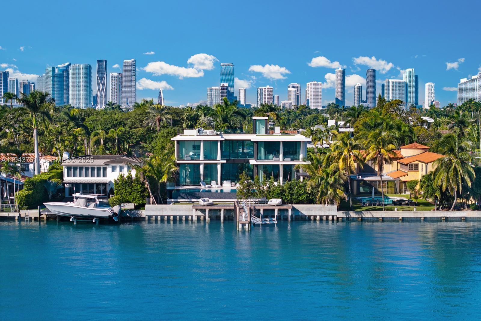 Step Inside With Me! Envisioned by a leading luxury builder, this architectural marvel rises 14.6 feet above sea level, commanding an unparalleled presence on Rivo Alto Island. Meticulously crafted interiors by esteemed Dunagan & Diverio reveal a sculptural staircase, illuminated millwork by Boffi, French oak flooring, and Ivory marble. The hosting salon features 11.6’ ceilings, an opulent bar, and a bayfront TV lounge framed by a flush ES window system to unobstructed Eastern views. The Boffi kitchen offers integrated cabinetry, a showpiece island, and a secondary kitchen equipped with Wolf and Viking appliances. Perfectly positioned with SE exposure, the primary suite features a spa-inspired bath with a concealed pocket door, spacious dressing room and a private terrace. 4 additional ensuite bedrooms + a guest pavilion, theater, elevated home automation, upstairs sitting room, and elevator complete the interiors. Outdoors, the mosaic infinity pool & spa setting also showcase a full Summer kitchen & cabana bath. The dock and lift welcome a large vessel mooring along an impressive 90 feet of water. This offering is topped off with a dramatic rooftop with 360-degree views. With over 4,000 SF, the expansive understory boasts two separate driveways with access to 2 air-conditioned garages, 2 carports, and additional parking for 10+ vehicles. Just minutes from Sunset Harbour and Downtown Miami, this home represents the newest addition to the Venetian Islands landscape.