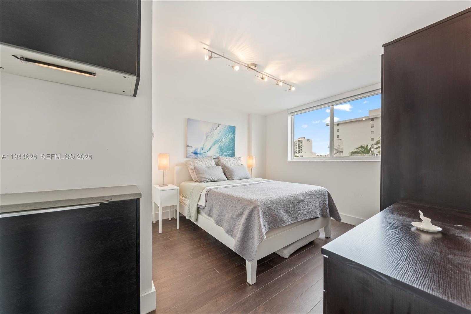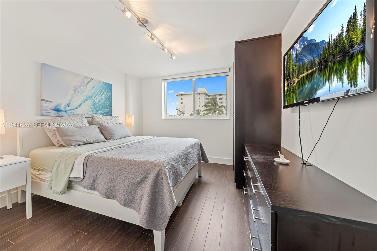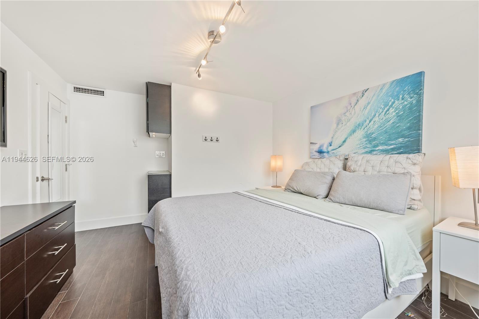 Beautifully updated 1-bedroom, 1-bath residence with a versatile den that can easily be used as a second bedroom, office, or guest space, located in the highly desirable South of Fifth neighborhood. This modern unit features an open-concept layout, sleek kitchen with high-gloss cabinetry, stainless steel appliances, and a spacious island ideal for entertaining. Wood-look ceramic tile flooring flows throughout, creating a warm and contemporary feel. Bedrooms offer custom-built closets maximizing storage and functionality. Spa-inspired bathroom with glass-enclosed shower and designer finishes. Enjoy ocean breezes and ocean views from your private balcony just steps from the beach. Includes an assigned parking space, a rare and valuable feature in the area, with the option to sell the space separately if not needed, for up to $50,000. Prime location near world-class dining, parks, and the Miami Beach boardwalk. Turnkey and move-in ready.