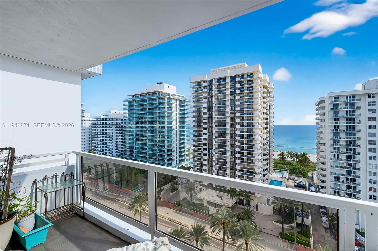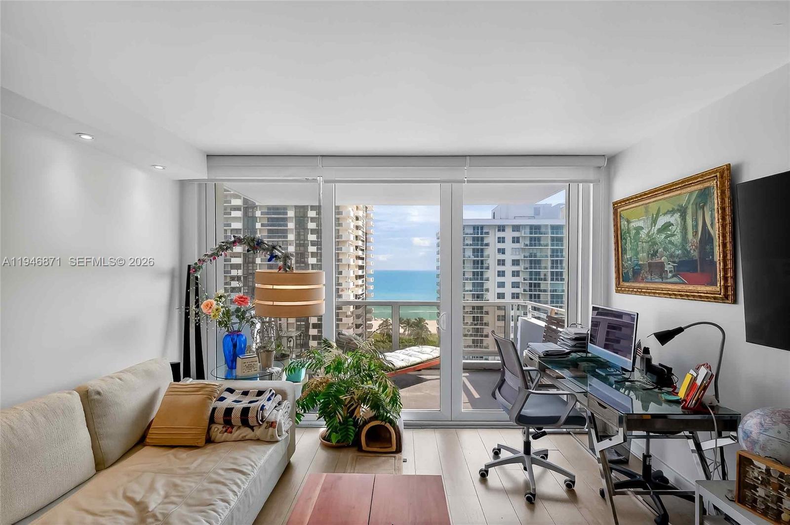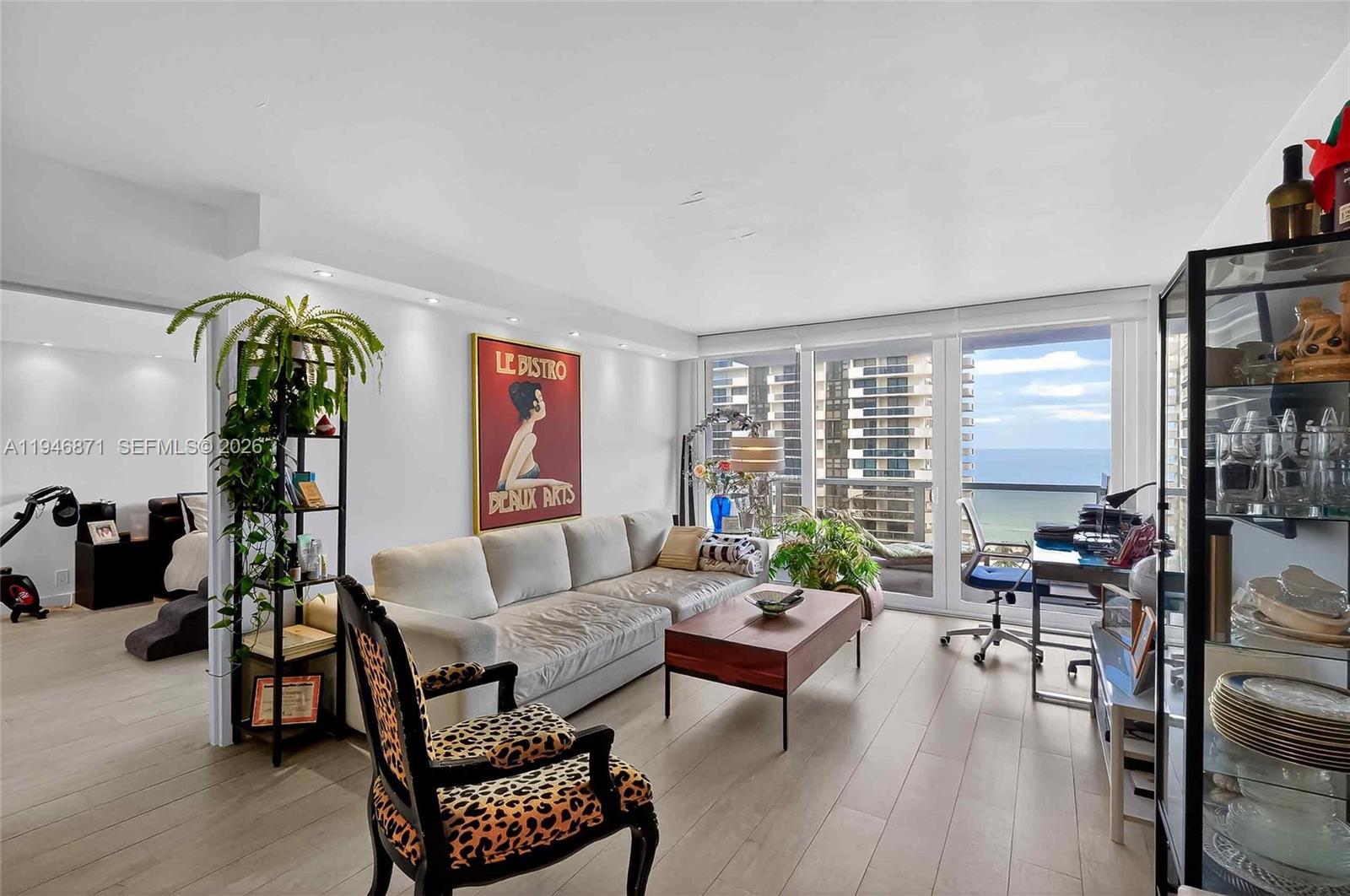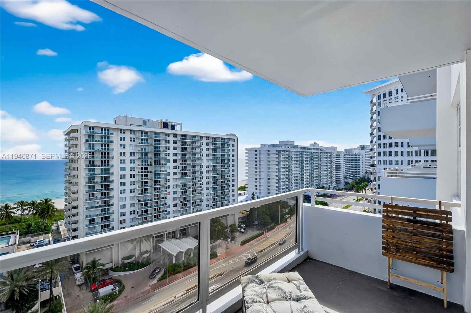 Spacious 2BR/2BA with Ocean Views from every room. Split-bedroom floor plan with porcelain wood tile throughout, recessed lighting, and updated kitchen. High-impact windows and sliding glass doors, and an expansive balcony. Unit comes with 1 covered parking space. Maintenance covers A/C, HD cable, water, high-speed internet & Wi-Fi. Seacoast Condo offers valet, 24/7 concierge, business center, media room, fitness center, sauna, BBQ area, and pool facing the Intracoastal. Prime location with quick access to Miami Beach’s beachfront boardwalk leave the car in the garage and bike, skate, or run down the 9 mile boardwalk that stretches from South Beach to Bal Harbour.