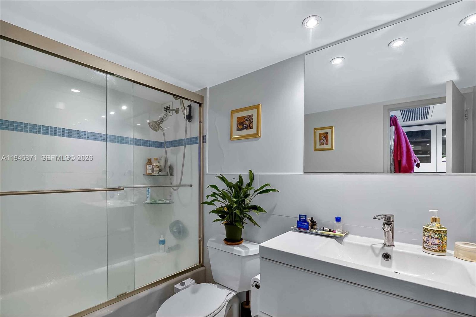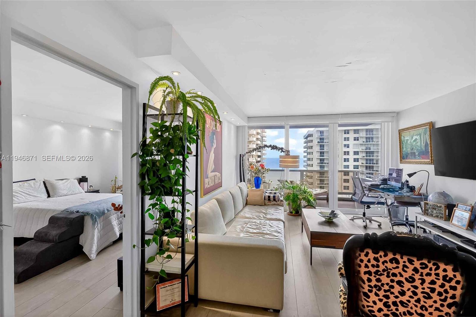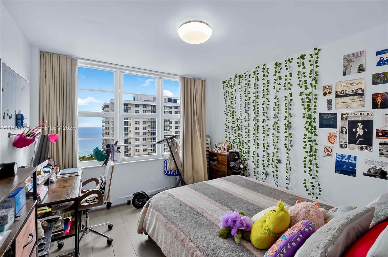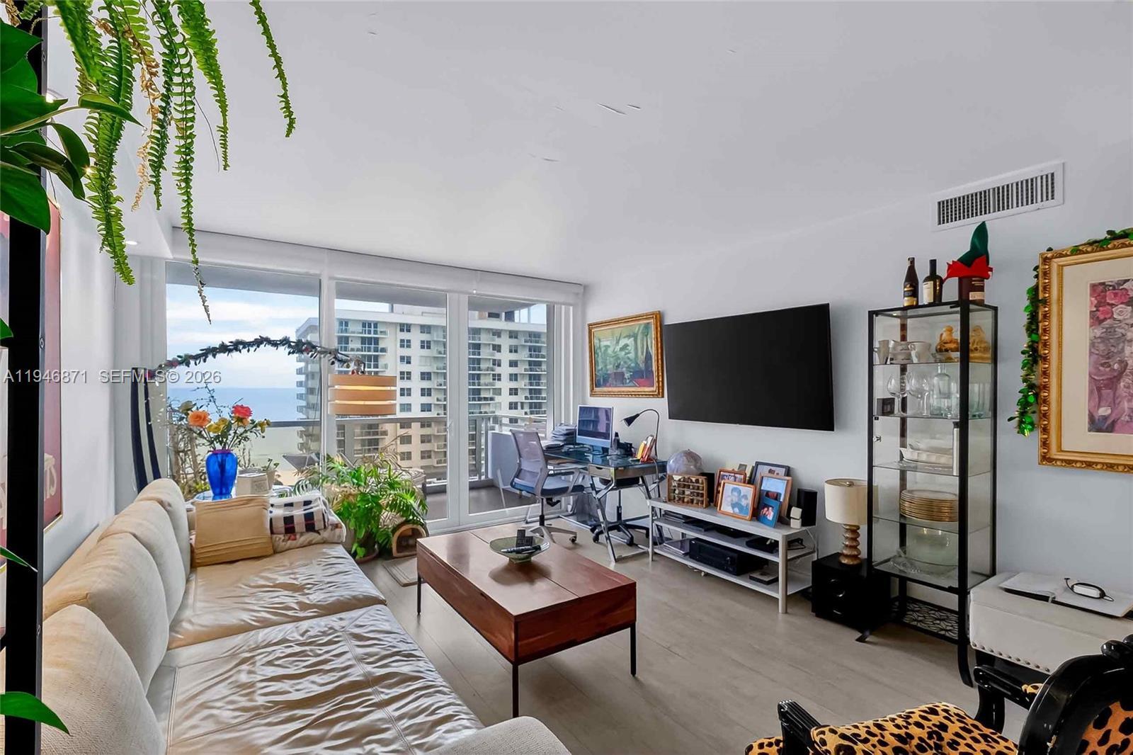 Spacious 2BR/2BA with Ocean Views from every room. Split-bedroom floor plan with porcelain wood tile throughout, recessed lighting, and updated kitchen. High-impact windows and sliding glass doors, and an expansive balcony. Unit comes with 1 covered parking space. Maintenance covers A/C, HD cable, water, high-speed internet & Wi-Fi. Seacoast Condo offers valet, 24/7 concierge, business center, media room, fitness center, sauna, BBQ area, and pool facing the Intracoastal. Prime location with quick access to Miami Beach’s beachfront boardwalk leave the car in the garage and bike, skate, or run down the 9 mile boardwalk that stretches from South Beach to Bal Harbour.