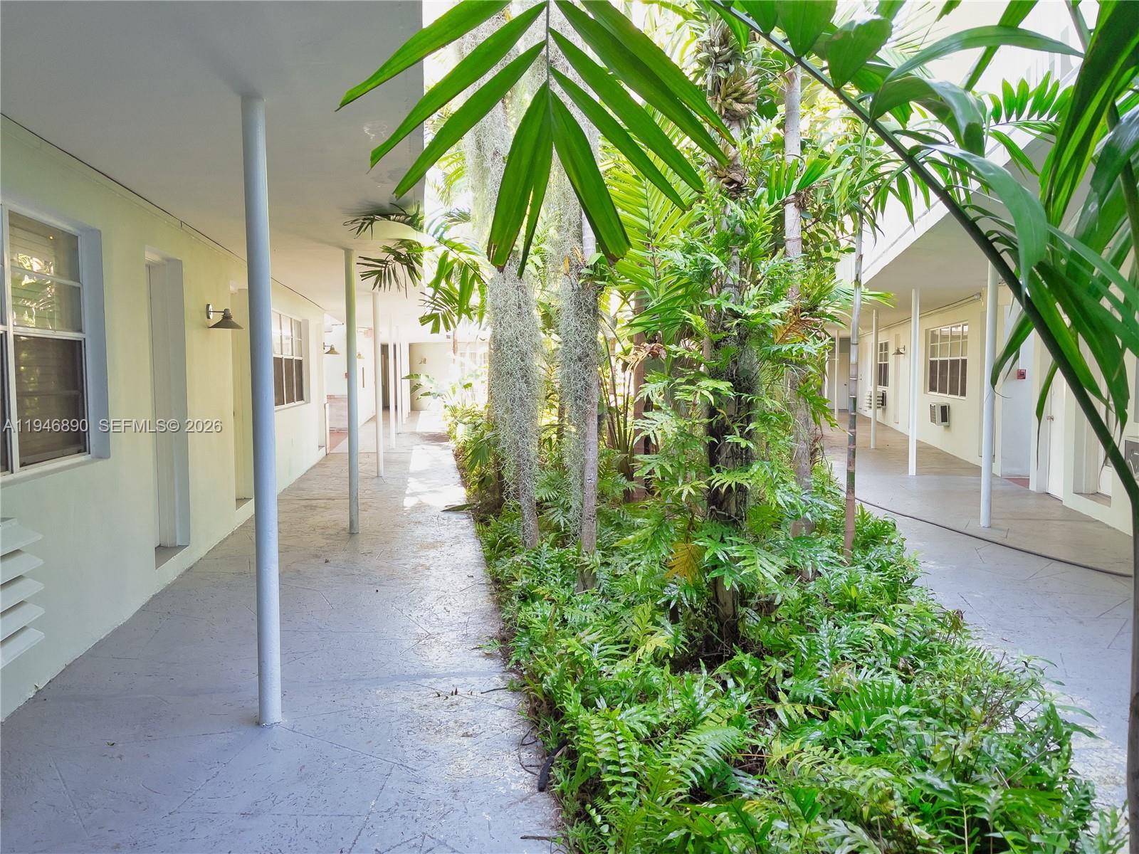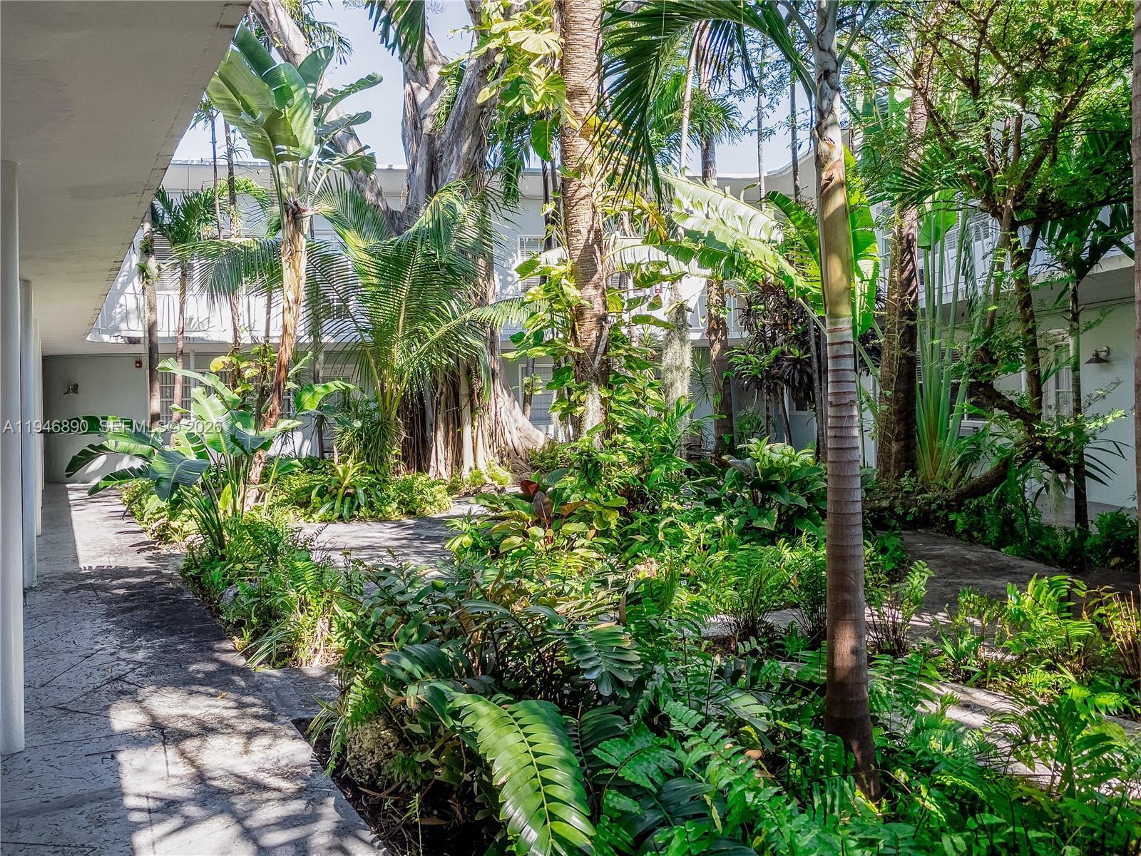 The townhouse style condominium apartment with its own private entrance is located on a quiet side street within view of the Miami Convention Center, two blocks from Lincoln Road and a short walk to the beach. The apartment features a curved living room wall and has multiple windows making it sunny and bright. There is a private entrance on the street side as well as a gated entrance from the main complex. The nautical themed historic Art Deco South Beach one bedroom apartment, designed by acclaimed architect, Henry Hohauser,has an interior center courtyard featuring a beautiful and peaceful tropical garden viewable from the apartment living room. The building is well situated, an easy walk to the Bass Museum, Collins Avenue hotels, Lincoln Rd shops, restaurants and markets. Street parking.