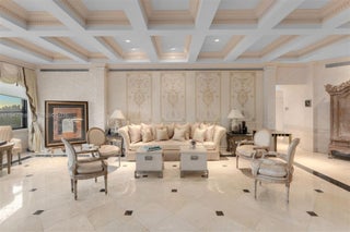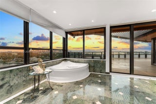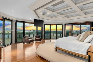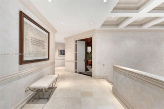 A legacy two-story penthouse in The Alexander, offering five bedrooms, eight full baths, and two half baths, this grand residence opens with a double-height foyer and a staircase that sets an impressive tone throughout. Sunrise and sunset views, along with panoramas of downtown Miami, the Intracoastal, and the beach, fill every major room, including an expansive formal living area, an elegant dining room, and a spacious kitchen with a breakfast area. A large informal living space opens to a balcony overlooking downtown Miami, and the in-unit elevator provides seamless access between floors. The home features a rare two-story office, a private theater room, a full laundry room, and separate staff quarters complete with its own kitchen and bathroom. The primary suite offers dual walk-in closets, a separate soaking tub and shower, and a wide balcony with gorgeous skyline and sunset views. Secondary bedrooms are generous in size and ensuite, while a dedicated game room connects to an oversized private terrace facing the beach. Residents enjoy a direct beachfront setting on Collins Avenue with immediate access to the sand and boardwalk, along with two pools, an on-site restaurant and poolside bar, a fitness center with sauna, spa services, beach service, and valet parking. With its scale, privacy, and exceptional layout, this penthouse lives like a true estate. All utilities included in the maintenance.
