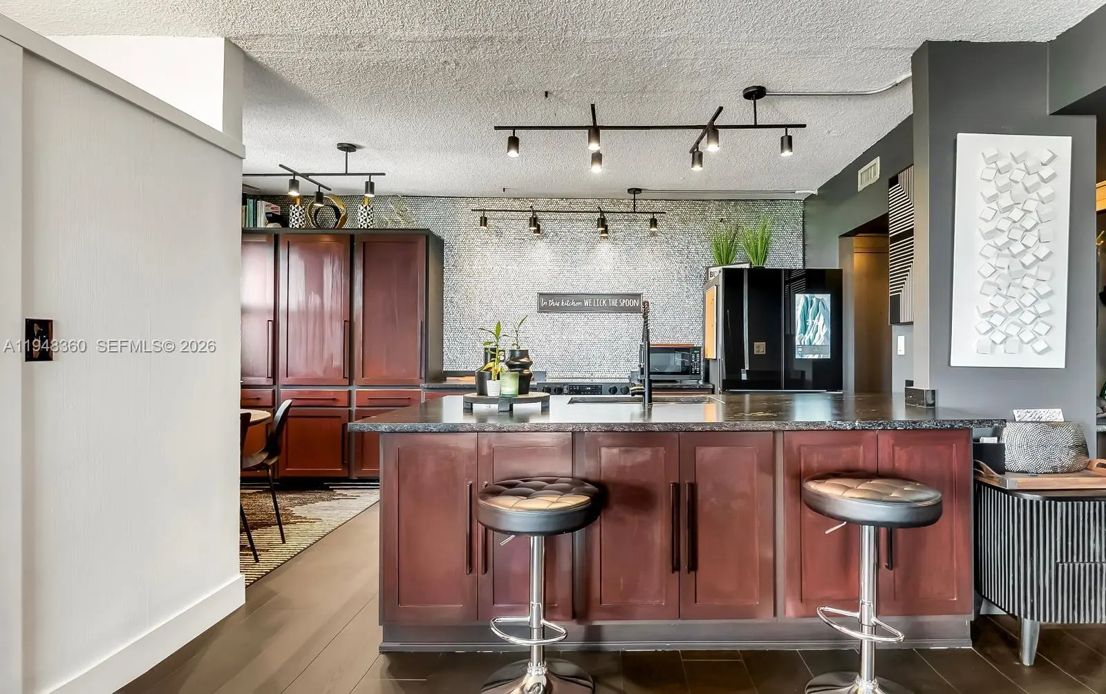 Updated 2-bedroom, 2-bath condo in the heart of Hollywood featuring vinyl flooring, stainless steel finishes, and a modern kitchen with granite countertops and an island. The kitchen is equipped with a Samsung Bespoke smart appliance package, including a slide-in electric range with precision knobs, a 4-door French door refrigerator with Family Hub, and a quiet top-control dishwasher with a third rack. Updated bathrooms and custom-built cabinetry add both style and functionality. Impact windows and sliding doors (2024) provide enhanced security and energy efficiency. Elevator access available in the building. Conveniently located approximately 13 minutes to Hard Rock Stadium, 5–7 minutes to Hollywood Beach and Boardwalk, and a short drive to The Club at Emerald Hills. Close to dining, shopping, beaches, and entertainment, making this an ideal primary residence.