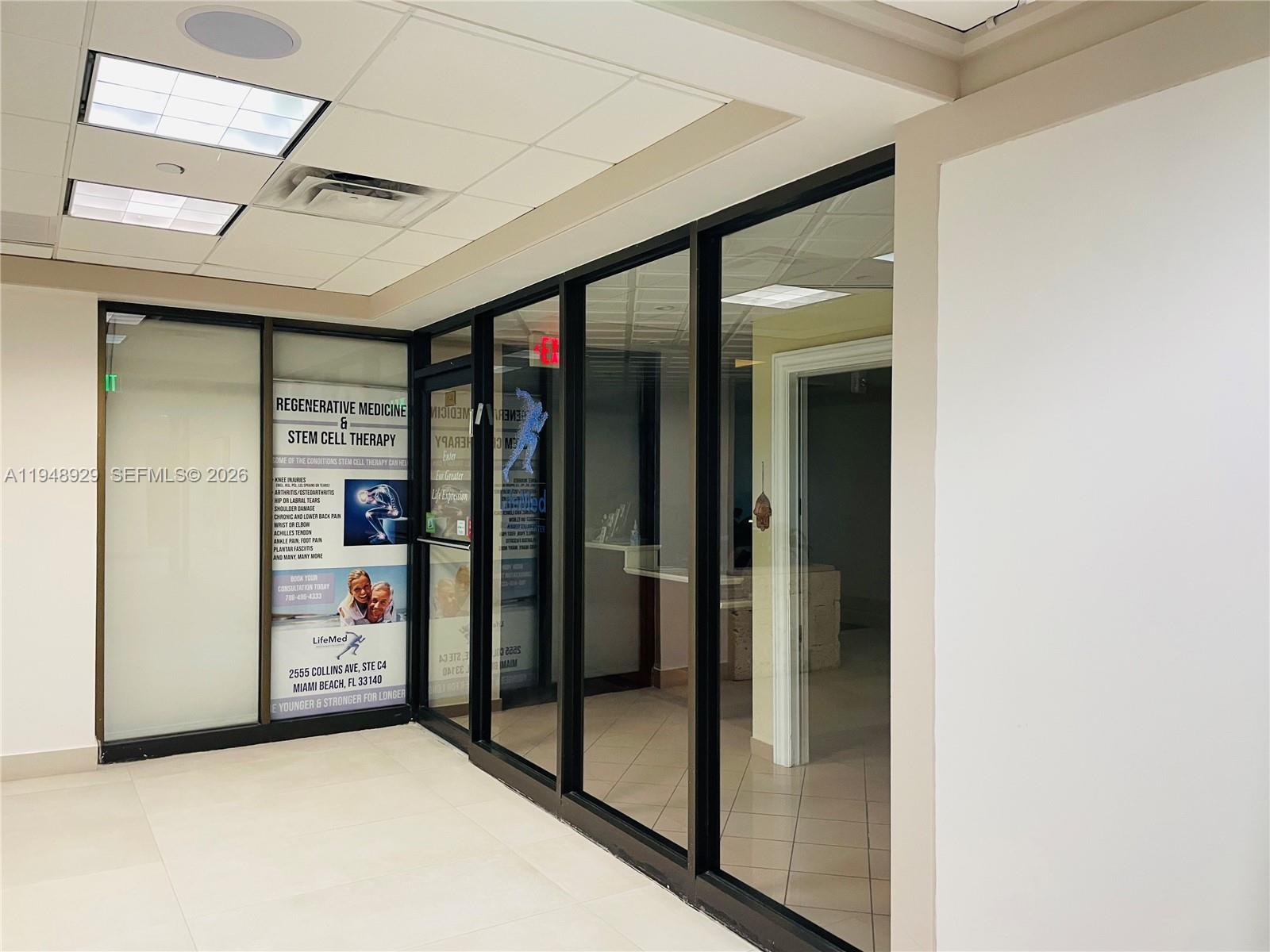 SHARED SPACE IN OFFICE SUITE OF 906 SQ.FT. IN FULL SERVICE OCEANFRONT CONDO. UNIT IS OCCUPIED BY CHIROPRACTOR AND INCLUDES OPEN SPACE WITH FRONTDESK, WAITING ROOM AREA, 6 SPACIOUS AND VERY QUIET TREATMENT ROOMS. COMPLETELY BUILT OUT WITH BUILT IN FURNITURE AND TILE FLOORS. BUILDING AMENITIES INCLUDE CONCIERGE, VALET PARKING, PACKAGE RECEIVING ROOM, MEETING ROOMS, CONVENIENCE STORE AND MUCH MORE! GREAT LOCATION BETWEEN THE 1-HOTEL AND THE EDITION. WALK TO YOUR OFFICE ALONG THE BEACH OR THE BOARDWALK. IDEAL FOR MEDICAL OFFICE, CHIRPRACTOR, PT, MASSAGE, SPA TREATMENTS ETC. TENANT CAN USE 3 ROOMS EVERY DAY OR USE ALL 6 ROOMS 3 TIMES A WEEK.