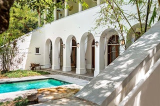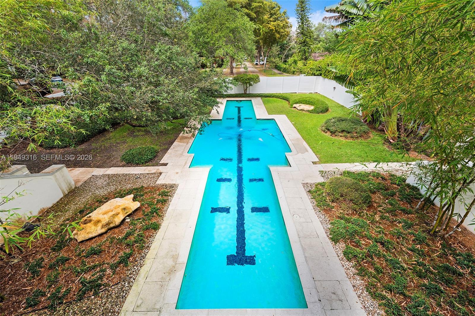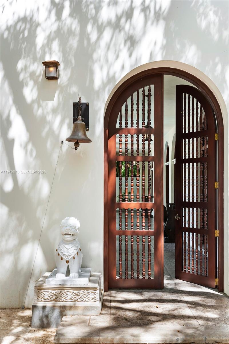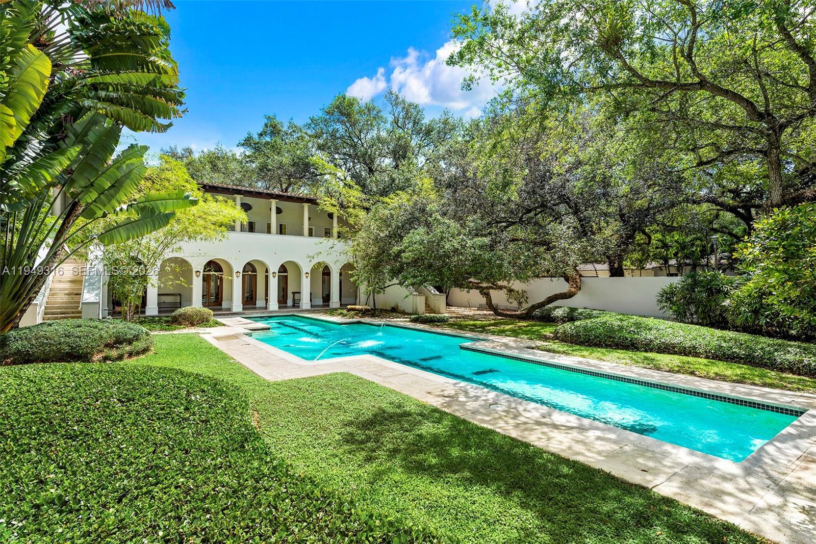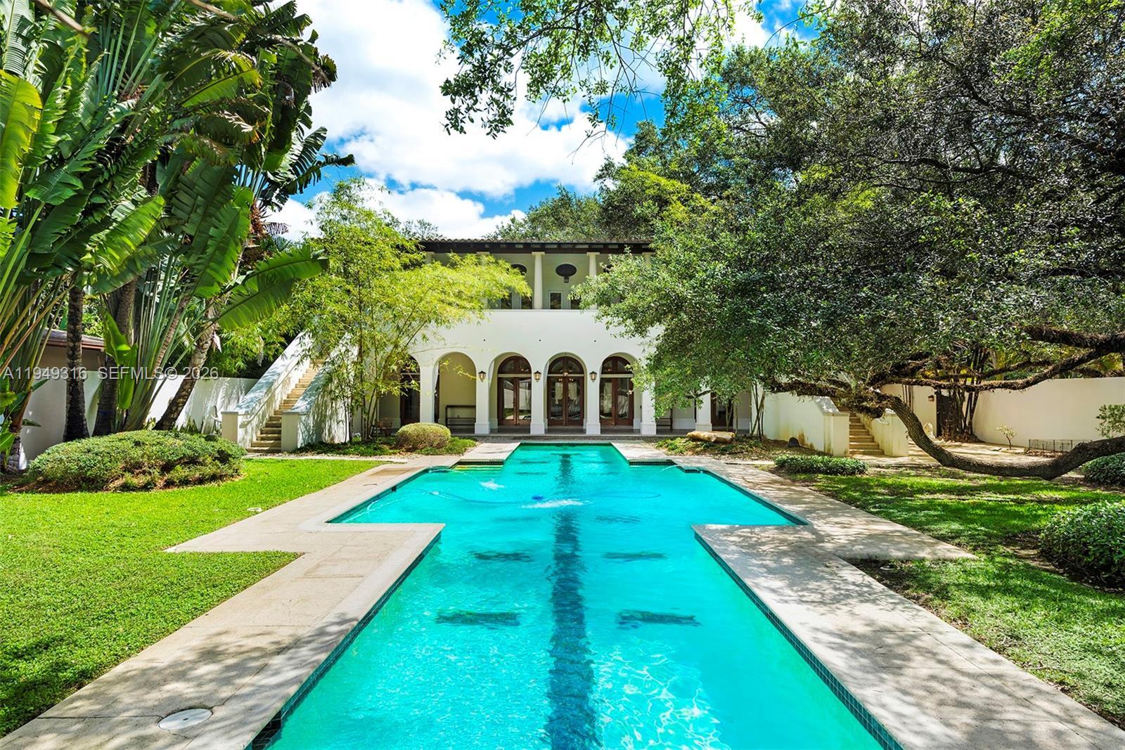 Mediterranean-style residence showcasing timeless architecture that seamlessly blends European refinement with classic Mediterranean elegance. Designed and built by renowned South Florida architect Ralph Portuondo, this home is rich in refined details, including natural oak wood floors and solid mahogany doors throughout. The front yard is a true sanctuary, featuring a Japanese-inspired garden framed by mature live oak trees and a 65-foot swimmer’s lap pool, all fully enclosed by a walled fence to ensure complete privacy. Perfectly positioned on the corner of Lybyer Avenue and historic LeJeune Road, the property offers the rare balance of central convenience and tranquil seclusion. Just minutes from top-tier schools, premier shopping, and fine dining, this home presents an exceptional opportunity to entertain, work, and raise a family in an urban paradise.
