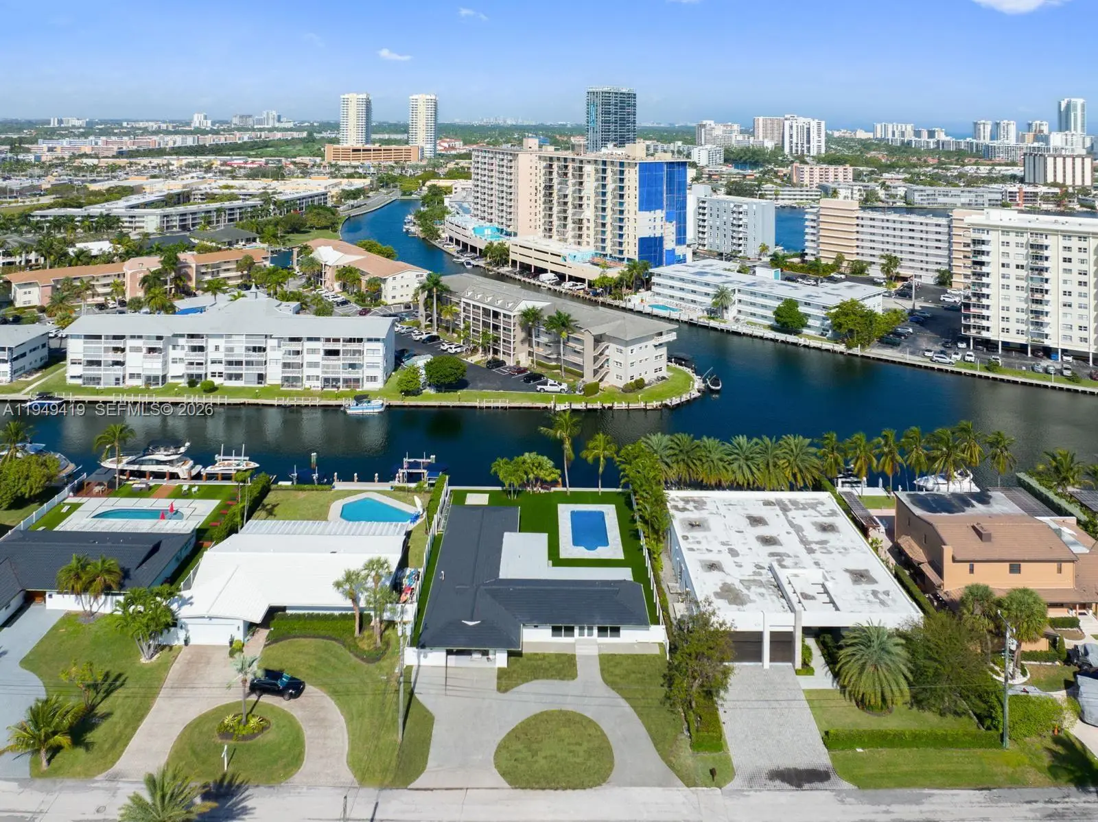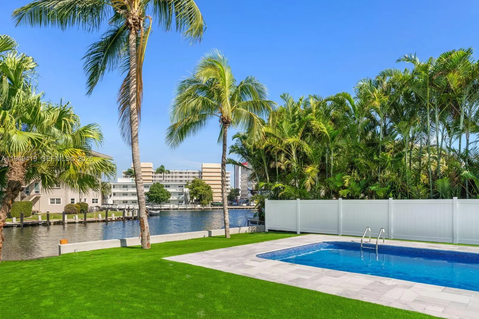 Welcome to this beautifully renovated waterfront estate in the prestigious gated community of Golden Isles. Set on an expansive 12,750sf lot with 85 feet of pristine water frontage, this exceptional property is a true gem for those seeking luxury coastal living.This stunning home features five spacious bedrooms and four elegantly designed bathrooms, perfectly blending style and functionality. The open-concept layout is filled with natural light, complemented by high-end finishes and modern touches throughout. Outdoors, a beautiful pool overlooks the serene Intracoastal Waterway, creating the perfect setting for entertaining or simply relaxing.Owner legally added additional 1,090sf to the existing property