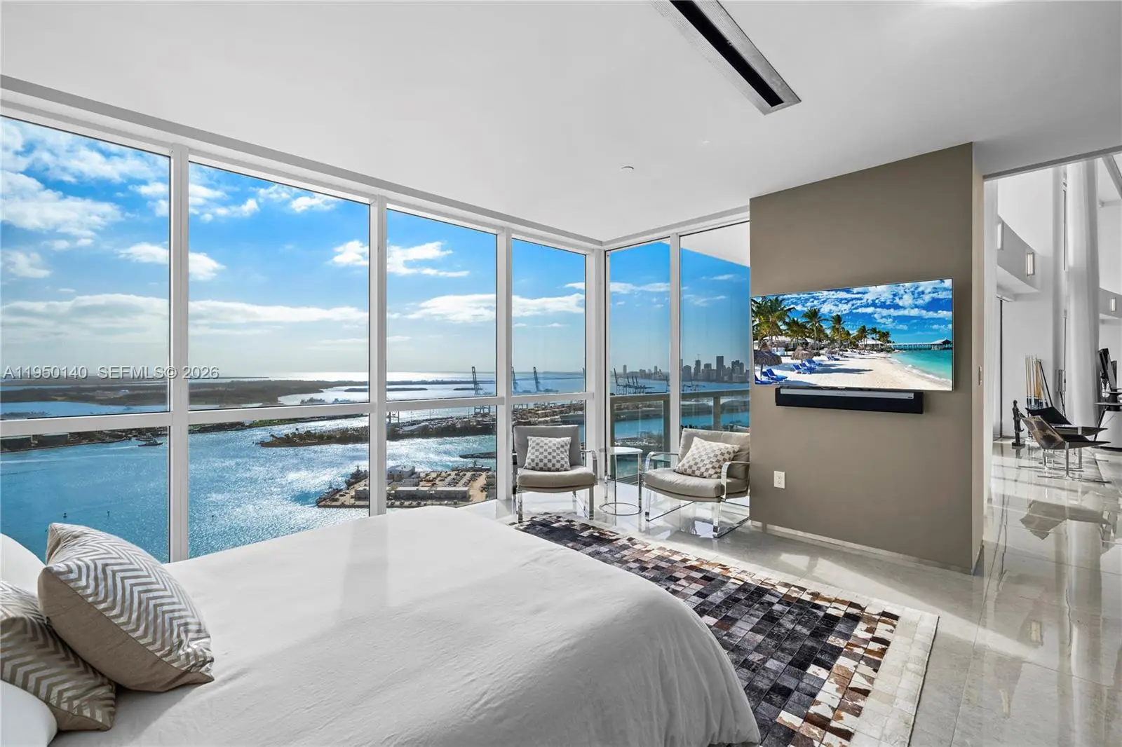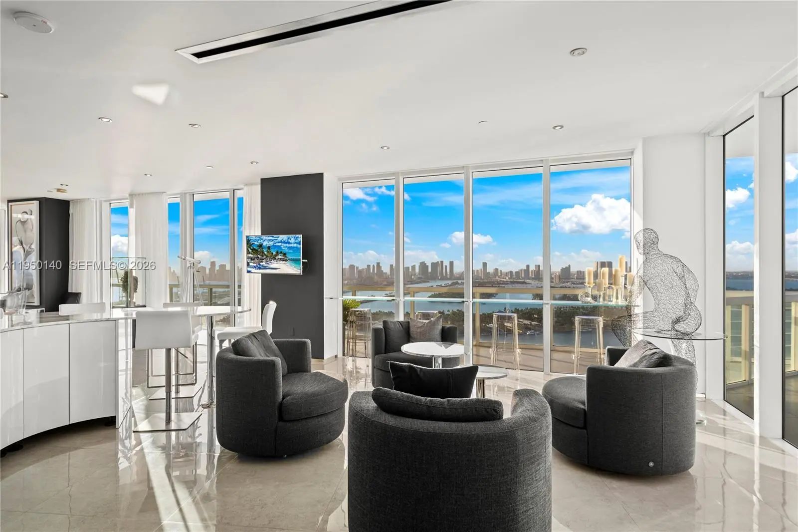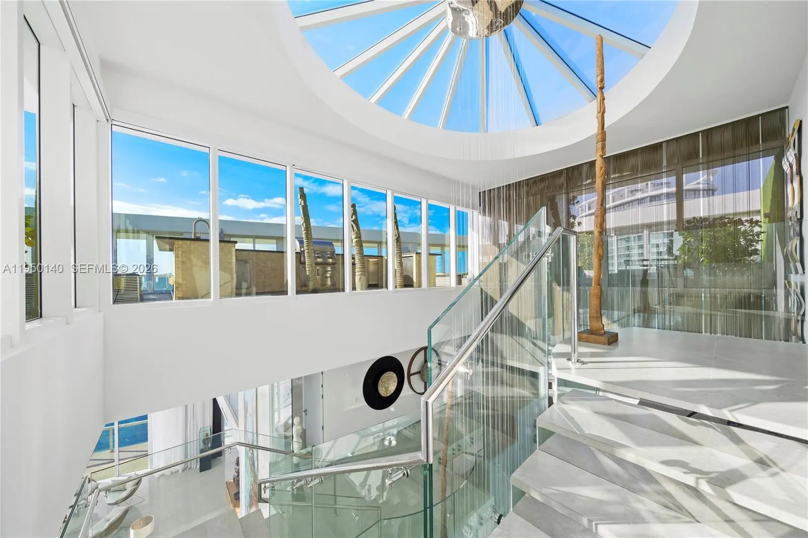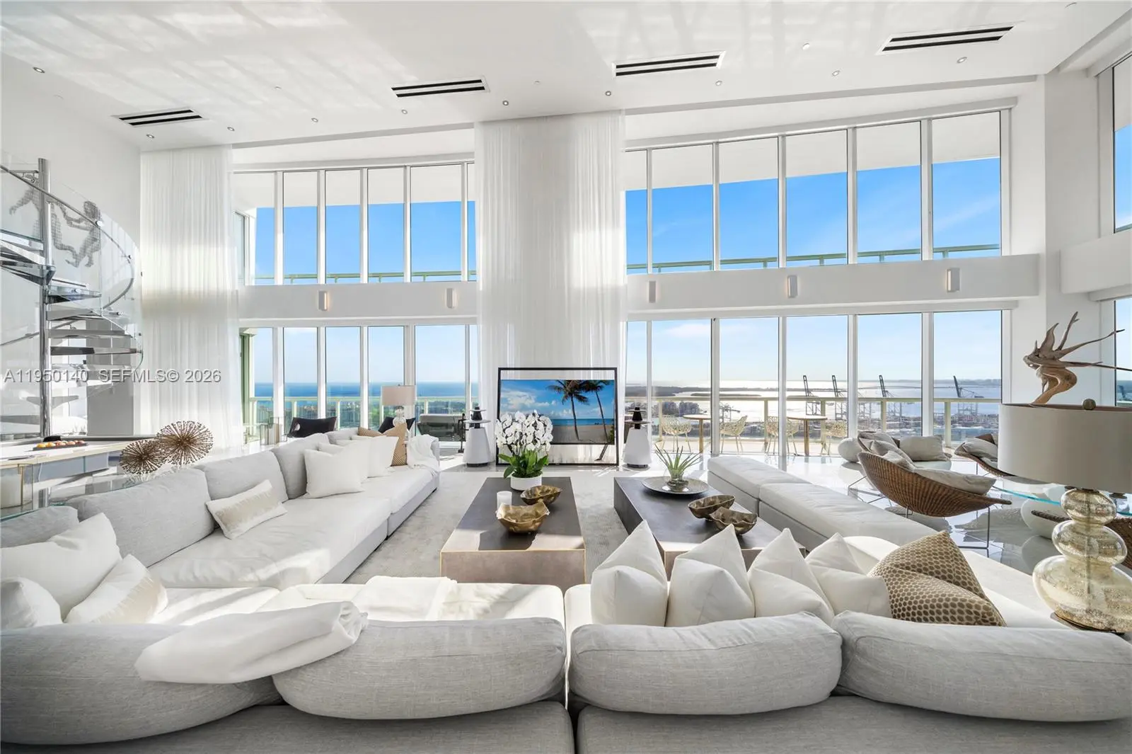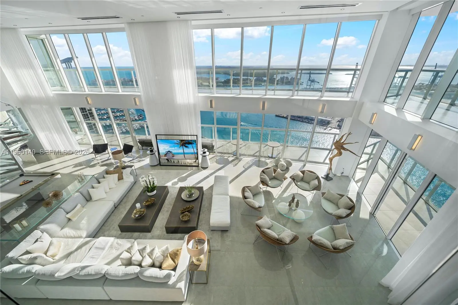 An irreplaceable trophy penthouse, crowning South of Fifth at the iconic Philippe Starck–designed ICON South Beach, establishes a new benchmark for Miami Beach luxury. This extraordinary tri-level masterpiece presents a bespoke private rooftop terrace, on e of the largest in Miami Beach, spanning over 11,000 sf of outdoor living, commanding unobstructed 360-degree panoramic views across every horizon. The private rooftop sanctuary is designed for grand-scale entertaining and elevated everyday living, featuring a saltwater pool, expansive sun lounges, a professional-grade outdoor kitchen with BBQ, dining for 18, a fire pit, and multiple wraparound terraces across all levels, creating a seamless indoor-outdoor lifestyle at an unprecedented scale.Two sculptural floating staircases, illuminated by dramatic skylights, connect the residence’s three levels. Soaring 20-foot floor-to-ceiling glass walls frame breathtaking vistas from sunrise to sunset, capturing the Atlantic Ocean and pristine beachfront, cruise ships gliding past Fisher Island, sweeping open bay views, and Miami's skyline sunsets.The grand principal suite is a private retreat encased entirely in glass, showcasing a spa-inspired bath with a floating shower and soaking tub, multiple walk-in wardrobes. The PH also offers two family rooms, two wine cellars, a bar lounge, billiards room, and private gym. Completing the offering is a private 7 car garage. This is a world-class legacy estate at the very to of Miami Beach.