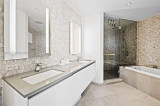 Experience luxury living at this stunning corner residence featuring 2 bedrooms and 2.5 bathrooms, offering sweeping panoramic views of the Miami skyline, Biscayne Bay, and the horizon toward Coconut Grove and the shoreline. This elegant home boasts floor-to-ceiling impact windows, bright open living spaces with marble floors, and a wraparound balcony. The modern kitchen is beautifully appointed with sleek Italian cabinetry and premium Bosch appliances. The primary suite has a spa-inspired bathroom with a rain shower and refined finishes, and a generously sized walk-in closet. The second bedroom is ensuite with equally impressive views, complemented by a guest bathroom for added convenience. Enjoy resort-style amenities all within one of Miami’s most sought-after neighborhoods.