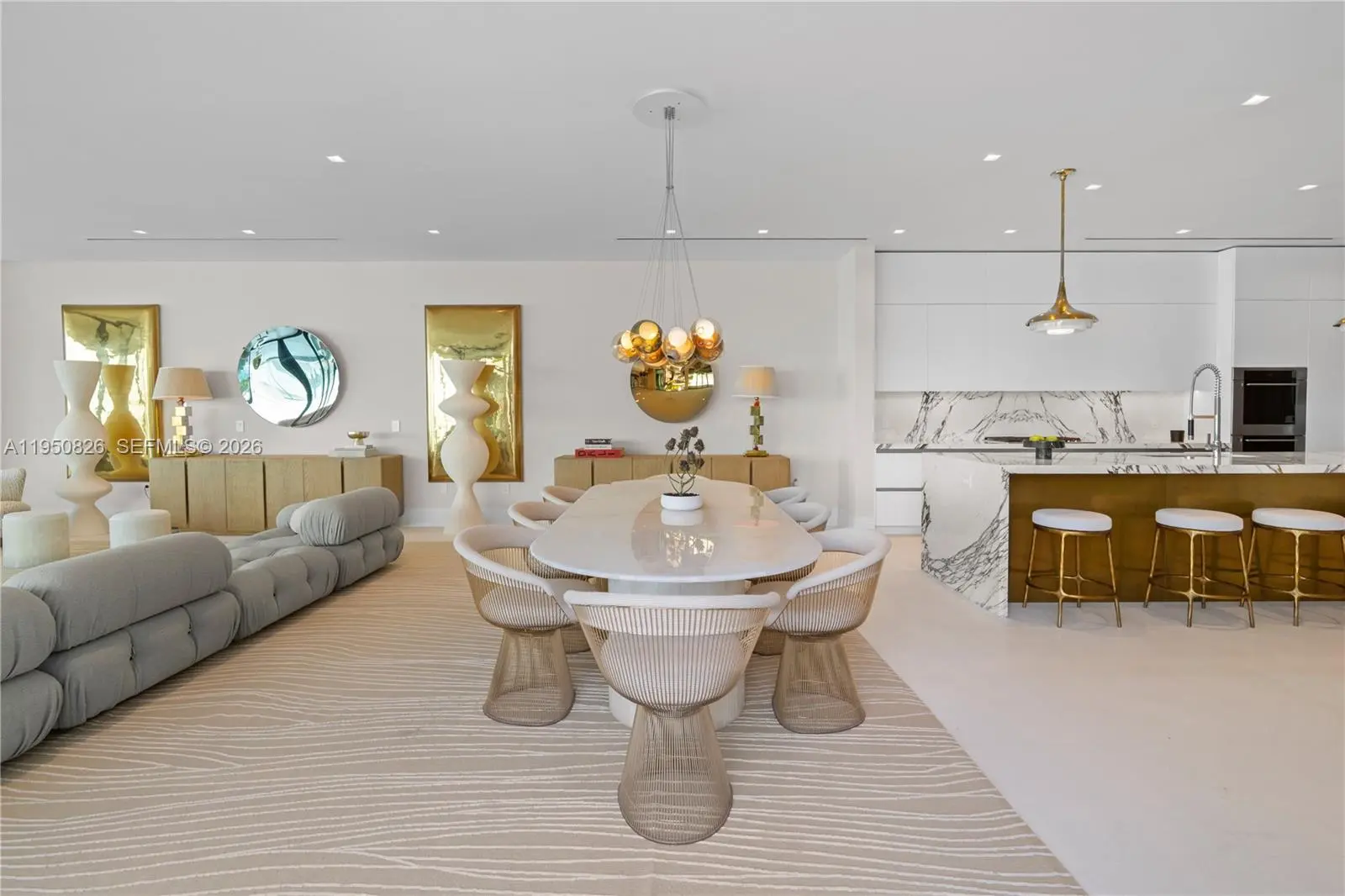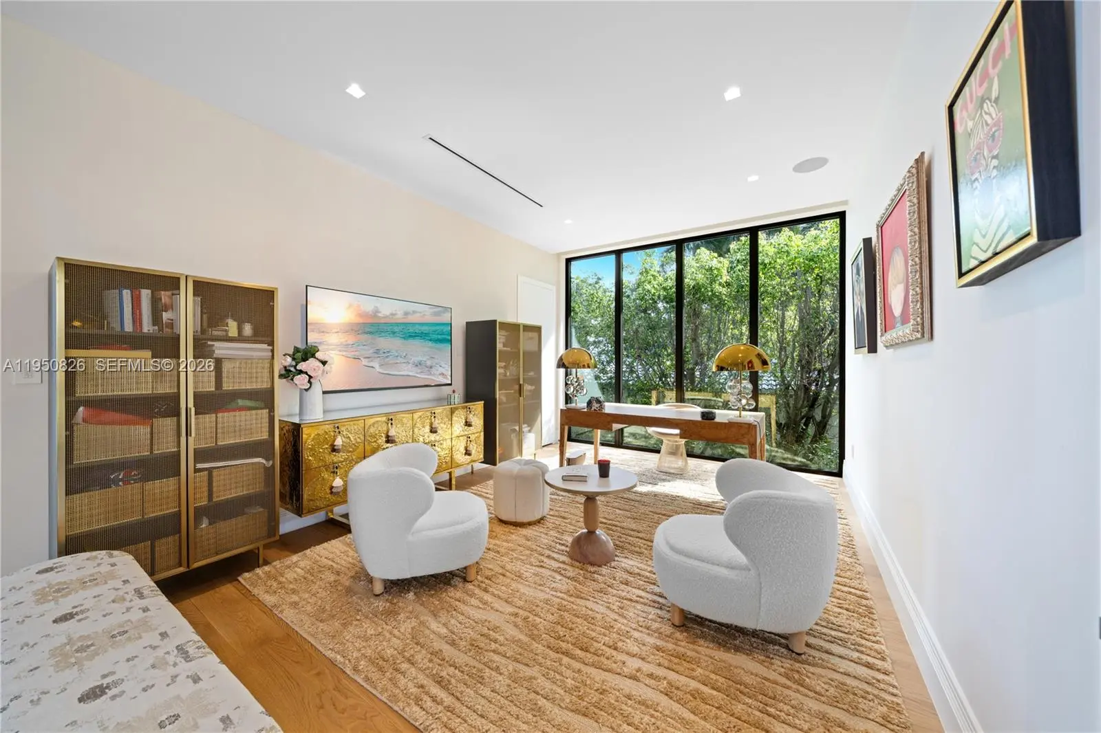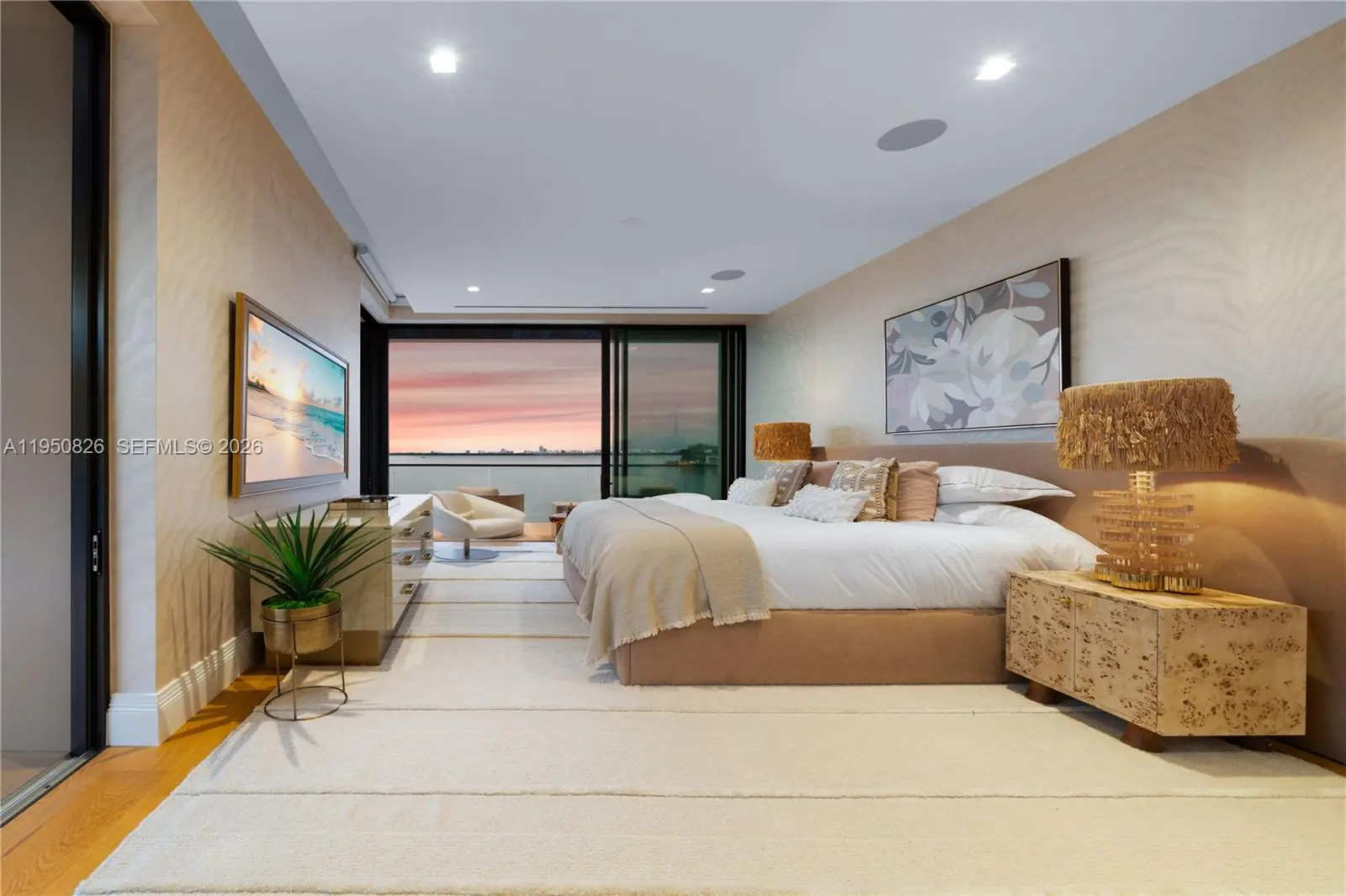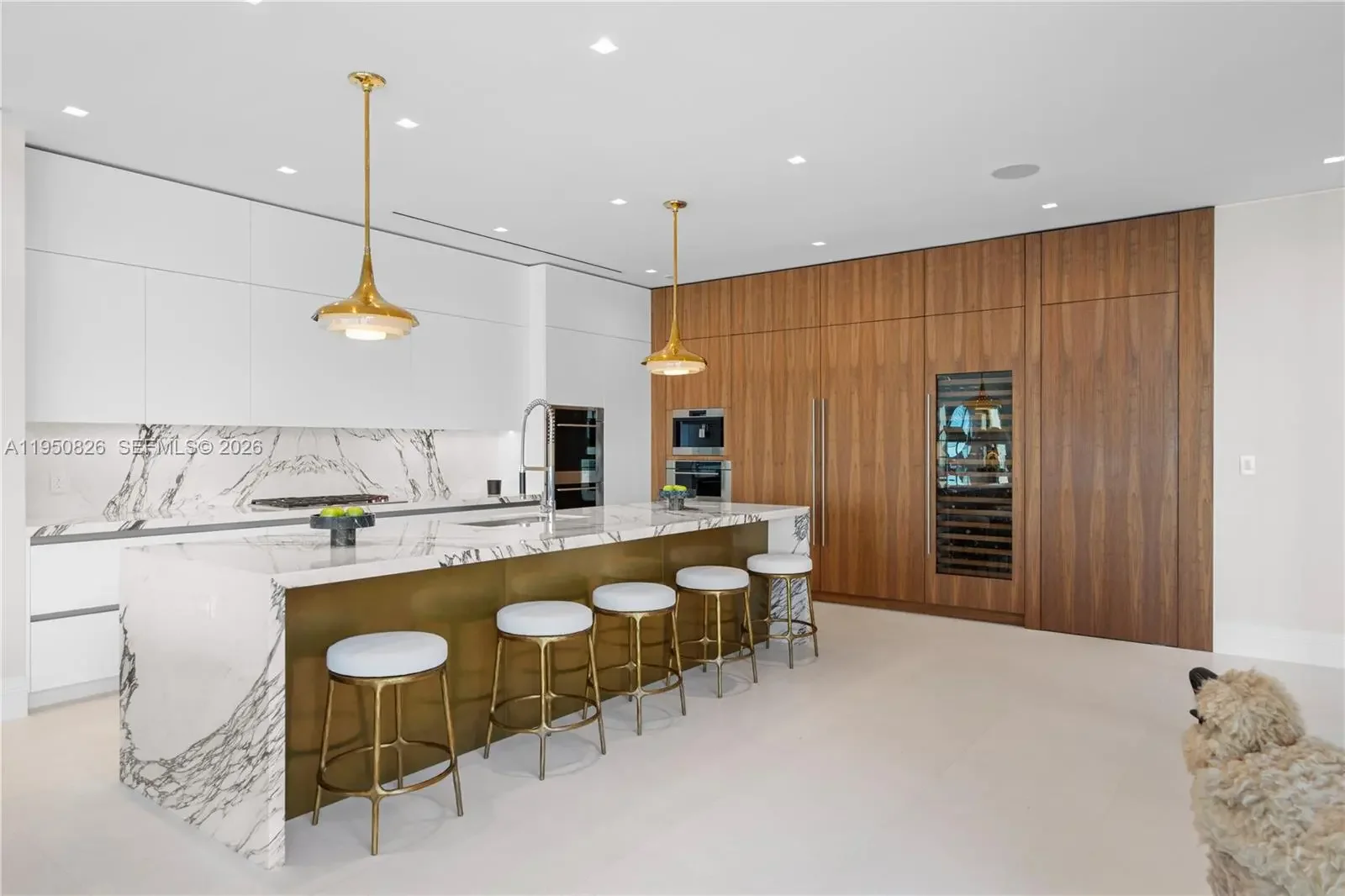 MODERN WATERFRONT RESIDENCE FEATURING CURATED LUXE INTERIORS SITTING ON THE OPEN BAY + CITY VIEWS ON THE EXCLUSIVE VENETIAN ISLANDS BY STRANG DESIGN! 5 beds + double offices & theater, 5 full baths + 2 powder rooms spanning 8,048 Adj SF living area on a 13,382 SF LOT w/ 104 FT of waterfront. Dramatic double-height entry & entertaining areas feature 25’ ceilings w/ custom Bocci chandelier & Nella Vetrina Italian doors + custom hidden bar. Chef’s kitchen w/ Wolf appliances, including gas range, double oven & coffee station. Sub-Zero fridge & wine storage. Ground-floor office, convertible to a bedroom, wrapped in Phillip Jeffries wallpaper + floor-to-ceiling built-in bookcases. Theater w/ State-of-the-art AV system featuring Bang & Olufsen surround sound system, Sony 4K HDR projector + separate wet bar & fridge. Primary suite w/ private terrace overlooking the Bay & City lights. Dedar wallpaper + dual walk-in closets. Primary bath w/ double vanity & electric frosted smart glass for privacy. Gym w/ PENT Equipment. Expansive Outdoor area w/ infinity-edge pool, outdoor kitchen w/ gas range + ipe dock. Rooftop terrace w/ open views of Miami and the Bay w/ storage & drink fridge. Smart Home technology includes Control4 automation, Sonos, Lutron lighting & fully motorized blackout shades in bedrooms & common areas. Fully secured w/ a wired alarm system, leak detection, a multi-camera security system & a whole-home gas generator. Gated Driveway for up to 4 cars + 2-car garage.