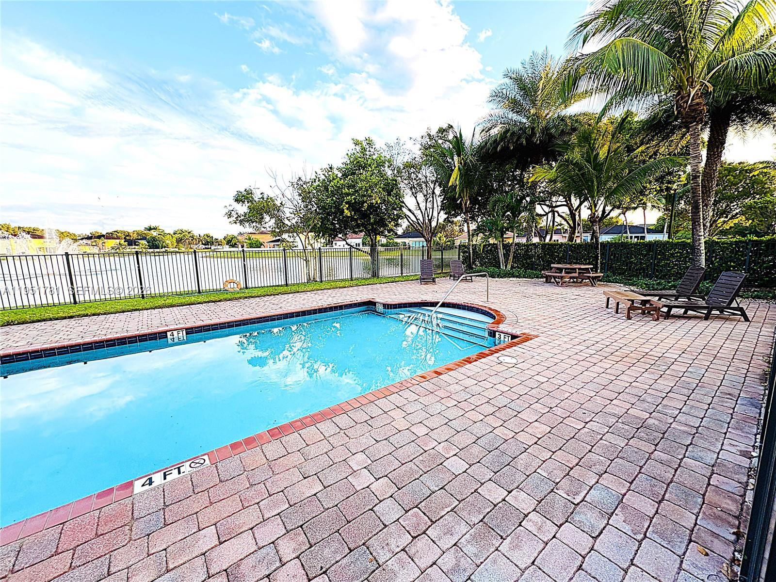 Beautiful & Spacious corner Townhouse – West Kendall. Step into this elegant 3-bedroom, 2.5-bathroom townhouse with 1,770 sq. ft. of thoughtfully designed living space, where comfort meets style. The huge master bedroom is a private retreat, and all bedrooms feature blackout window treatments for peaceful, restful nights. The first-floor shines with stylish zebra curtains and tile flooring, while the second-floor features warm laminate throughout. Enjoy an elegant modern kitchen with stainless steel appliances and a cozy breakfast nook, a bright family room perfect for relaxing or entertaining, and a separate dining room ideal for formal meals and special gatherings. Step outside to a fully fenced, paved patio for year-round outdoor enjoyment. Additional highlights include a 1-car garage, two front parking spaces, and plenty of visitor parking spaces. Built in 2006, this home is ideally located near West Kendall Baptist Hospital, shopping, fine dining, top schools, and just 3.5 miles from the Florida Turnpike. Relax and unwind at the sparkling community pool and experience the perfect combination of style, comfort, and convenience. Easy to show—don’t miss the chance to make this your dream home!