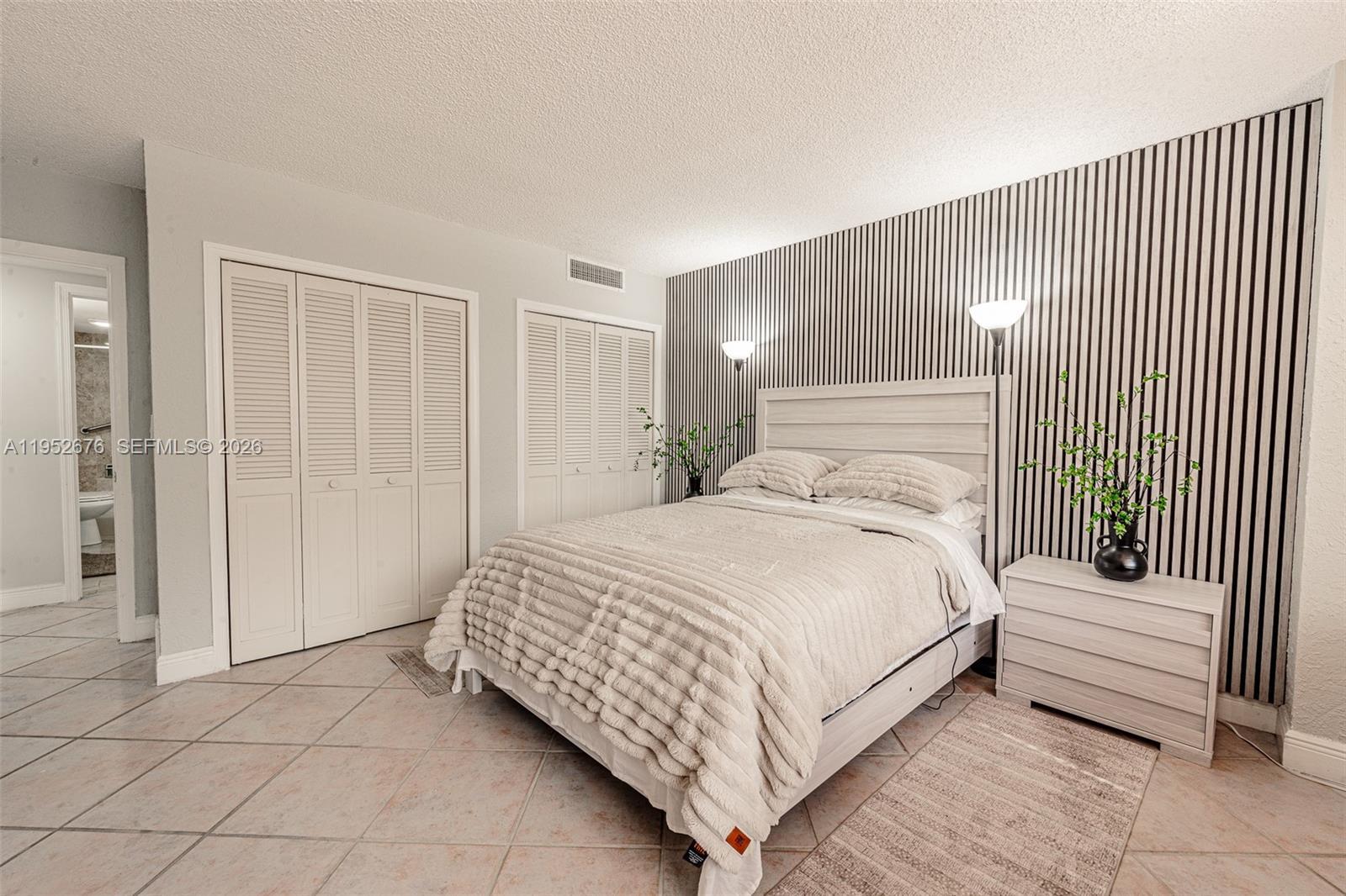 Welcome to this updated and tastefully furnished residence in the gated waterfront of Cricket Club Condo. This expansive 3-bedroom, 3-bath home features breathtaking water views and generous living spaces throughout. The redesigned, light-filled kitchen offers stainless steel appliances, a wine cooler, and a charming breakfast balcony. Closets have been fully built out, updated bathrooms, and each room enhanced with a modern touch. Enjoy stunning sunrises and bay views from the living room balcony, or unwind with sunset views from the kitchen balcony. Additional features include an in-unit washer and dryer, one assigned parking space, one valet parking spot, and a conveniently located storage unit on the same floor. Residents enjoy resort-style amenities including 24-hour security, valet service, tennis and basketball courts, marina access, a fitness center, and a waterfront pool. Ideally located near Bal Harbour, Aventura, and Miami Shores, with dining, shopping, and beaches just minutes away.