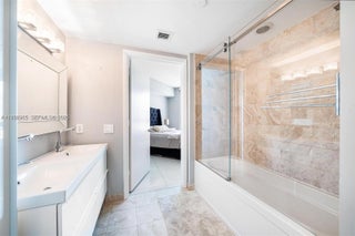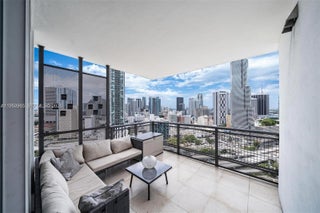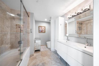 Experience luxury living in this 2 bed / 2 bath + den residence with sweeping views of the Miami skyline and river. The split floorplan features a newer kitchen with quartz countertops, updated appliances, and an in-unit washer and dryer. Bathrooms offer elegant upgrades including glass-enclosed showers, floating vanities, and a tankless water heater. Additional features include electronic shades, blackout bedroom curtains, custom closets, and full-service high-rise living with 24/7 security, pool, gym, sauna, business center, valet, and one assigned parking space. Agents: see broker remarks for showings and times.