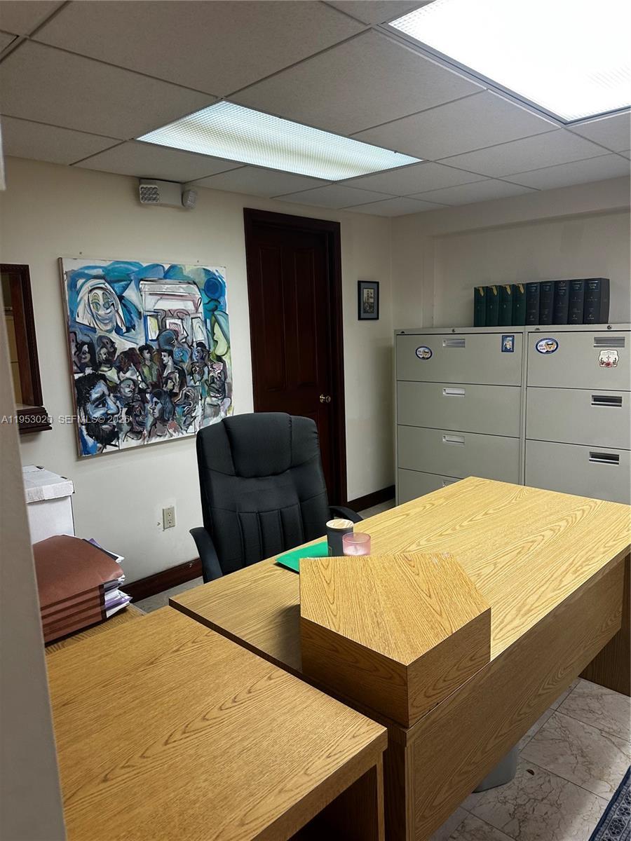 Owner-occupied attorney office offering a shared professional suite with approximately ±400 sq. ft. available for lease to another Attorney or Therapist. Space includes a shared reception/waiting area and conference room. Rent includes electricity (FPL), water, parking, and photocopy machine use. Located in the Galloway Professional Center, the suite features a separate secretary area and is fully furnished with desk, filing cabinets, and built-in cabinetry. Tenant enjoys access to a conference room, fully equipped kitchen, bathroom facilities, and ample parking, including additional client parking. Available immediately.