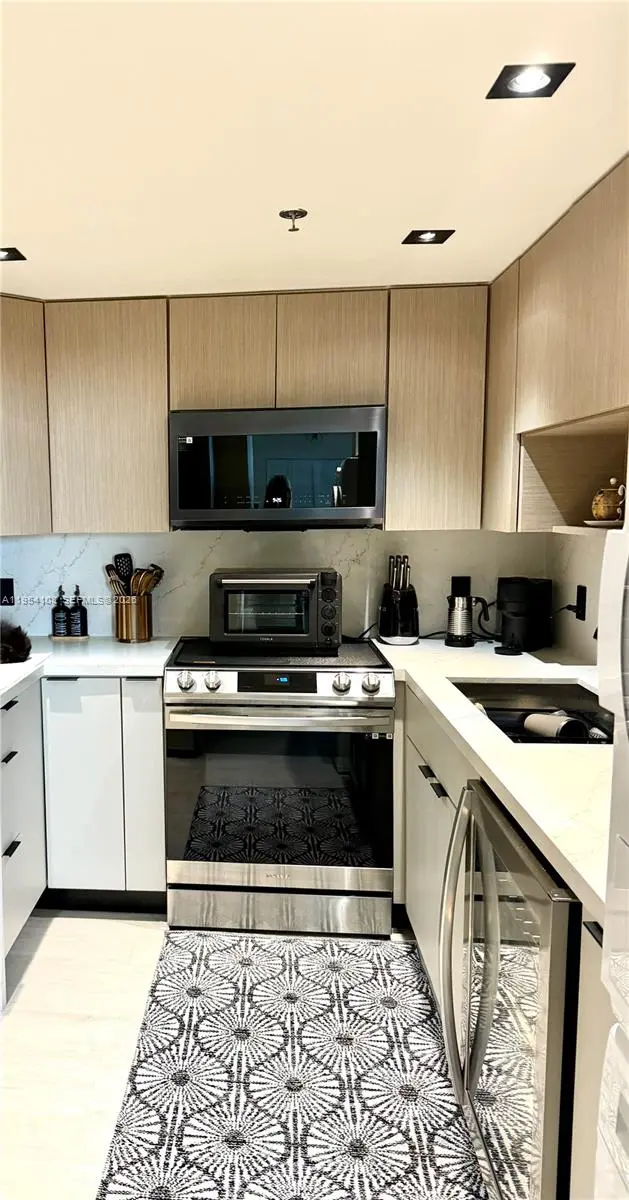 Beautifully renovated condo located in the heart of Mid-Miami Beach. This modern residence features spacious, light-filled interiors, sleek finishes, and panoramic views of Indian Creek and the Miami skyline. The open-concept layout includes a gourmet kitchen with new stainless steel appliances, custom cabinetry, and quartz countertops, perfect for entertaining or relaxing at home. The primary suite offers a serene retreat with a walk-in closet and a featuring designer fixtures and finishes. Bosch washer/dryer inside unit with deeded secure covered parking. Enjoy resort-style amenities, Heated pool, fitness center, sauna, and beach access.