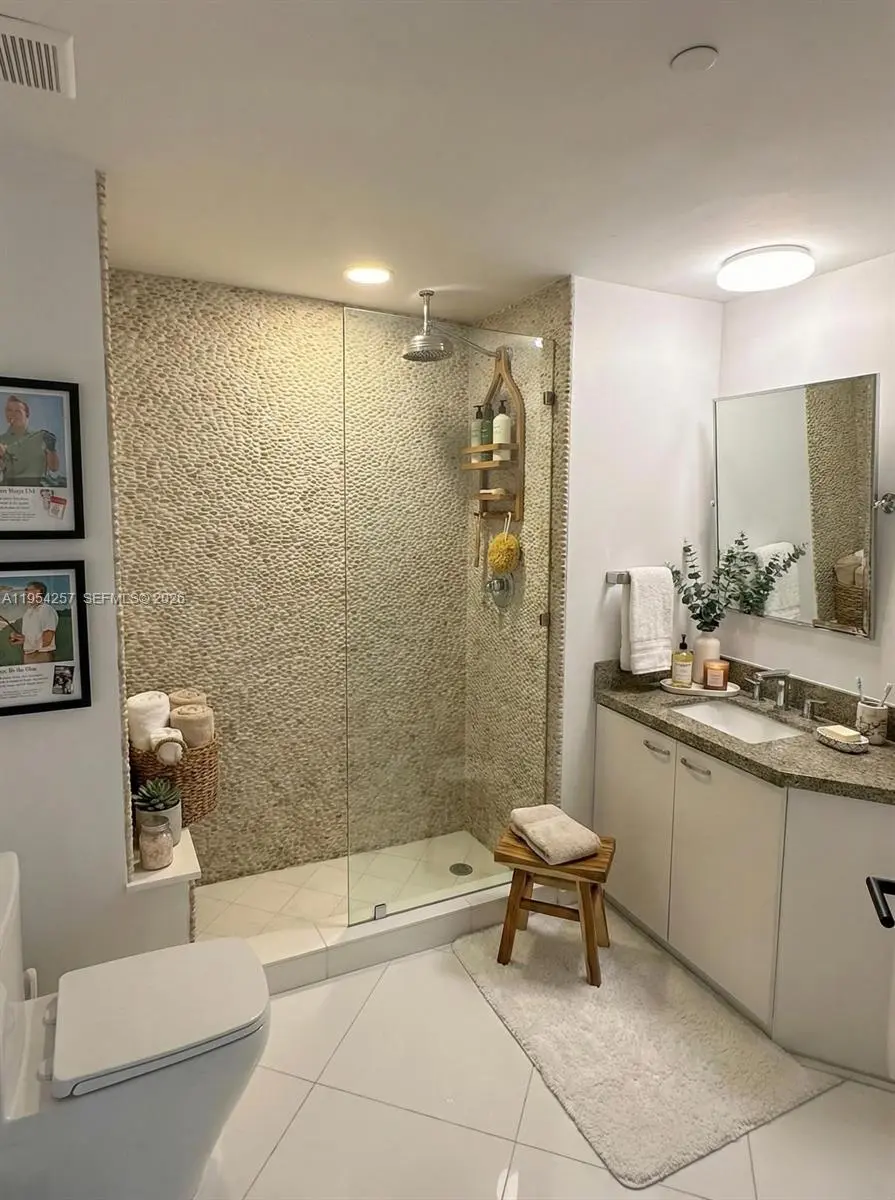 Set along the prestigious Venetian Causeway, The Grand Venetian offers premier waterfront living, and this rare northeast corner residence is among its most coveted—and currently the only unit available for rent in the building. Enjoy breathtaking panoramic views from a 600 SF wraparound terrace overlooking the iconic Venetian Bridge and tranquil sailboat-lined waters, creating a stunning backdrop from sunrise to sunset. Floor-to-ceiling glass fills every room with natural light and serene water views. Interiors feature white stone flooring in the living areas and rich dark wood floors in the bedrooms. Includes two covered parking spaces (one assigned, one valet), EV charging access, in-unit washer/dryer, and generous closet space. Building amenities include a newly upgraded gym, pool, cab