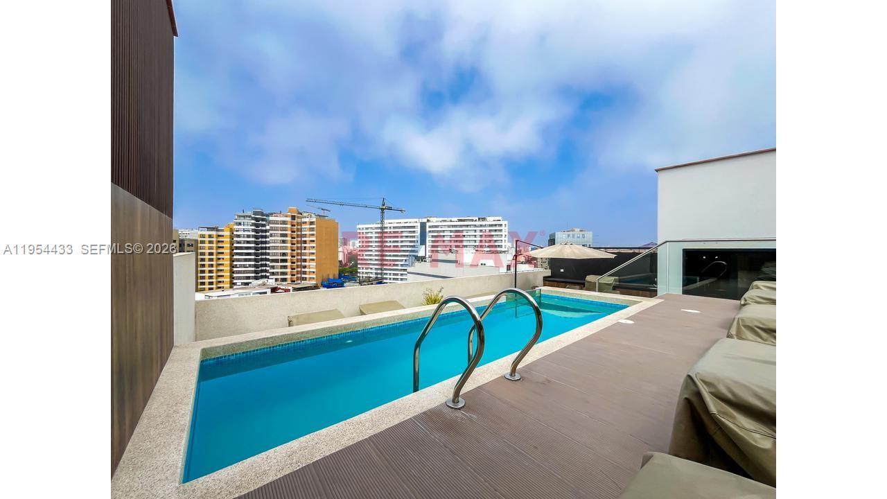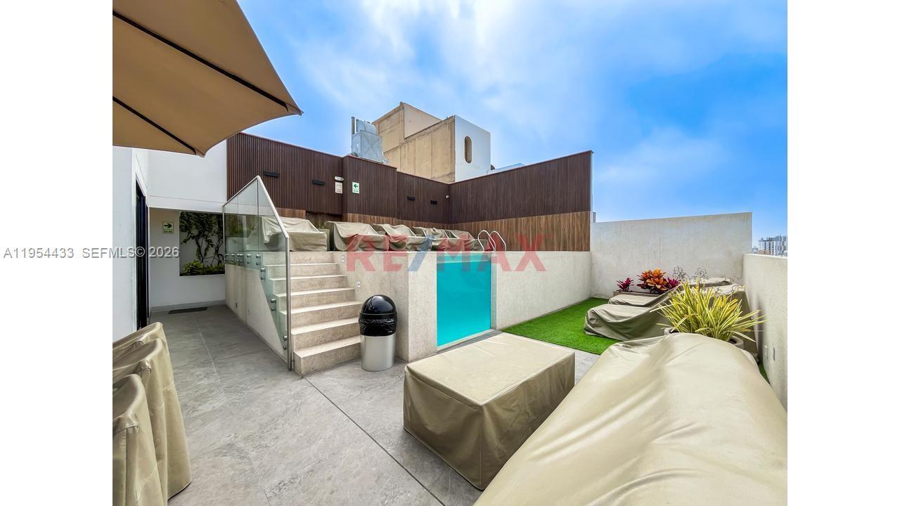 Live in style and comfort in this beautiful apartment located on Calle San Martín, 5th floor, in Miraflores, Lima-Peru. With an excellent distribution of 76 m², this apartment stands out for its modern, functional design and for the abundant natural light that illuminates each environment, ideal for couples, professionals or as a safe investment. 2 bedrooms (master with balcony, curtains rollers) plus den ideal for office or reading room. Spacious living-dining room with balcony and pleasant view. Equipped kitchen with natural gas connection. 2 full bathrooms. 2 parking spaces. Common areas: Swimming pool, BBQ area. Conference room for meetings and events. Privileged location, close to parks, restaurants, shops and with easy access to the main roads of the city.