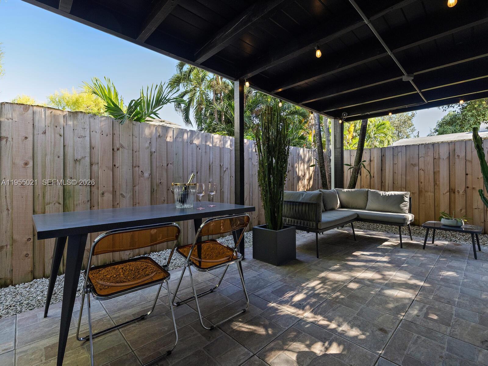 Welcome to Blue Palm in Spring Garden! Tucked inside one of Miami's most enchanting historic enclaves, this substantially updated 2bed/1bath bungalow is airy, inviting and rich with period character. Sunlight fills the open living areas, and the modern kitchen features a generous cooking island with bar seating. The dreamy Florida room with wraparound jalousie windows is the perfect spot to work, create or unwind. Two comfortable bedrooms with custom Elfa closet systems and a refreshed bath complete the interior. Step outside to a lush private oasis with native plantings, premium turf and a pergola-shaded patio. Separate laundry room and shed add convenience. Additional updates: new roof (2025) and updated plumbing and electrical. Spring Garden is a micro-neighborhood with tree-canopied streets and abundant wildlife just minutes from Downtown, Brickell, the Heath District and the airport!