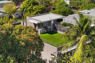 Step into modern luxury and effortless indoor-outdoor living in the heart of Coconut Grove. Custom built in 2021, this 4BD/4BA gated residence blends high design with everyday comfort. The chef’s kitchen impresses with bespoke cabinetry, quartz countertops, gas range, and a full suite of Thermador appliances. Expansive living spaces flow to a phantom-screened patio, summer kitchen, and heated saltwater pool with waterfall, hot tub, and mosquito misting system—perfect for year-round enjoyment. A private elevator connects all levels to a fully turfed rooftop oasis complete with TV, BBQ, and additional summer kitchen. The primary suite offers a spa-like bath and boutique-style closet, complemented by a junior suite ideal for guests or children. Thoughtful upgrades include a whole-house generator, impact glass, volume ceilings, and attached garage with 2-car carport. Just moments from parks, top schools, and Village cafés.