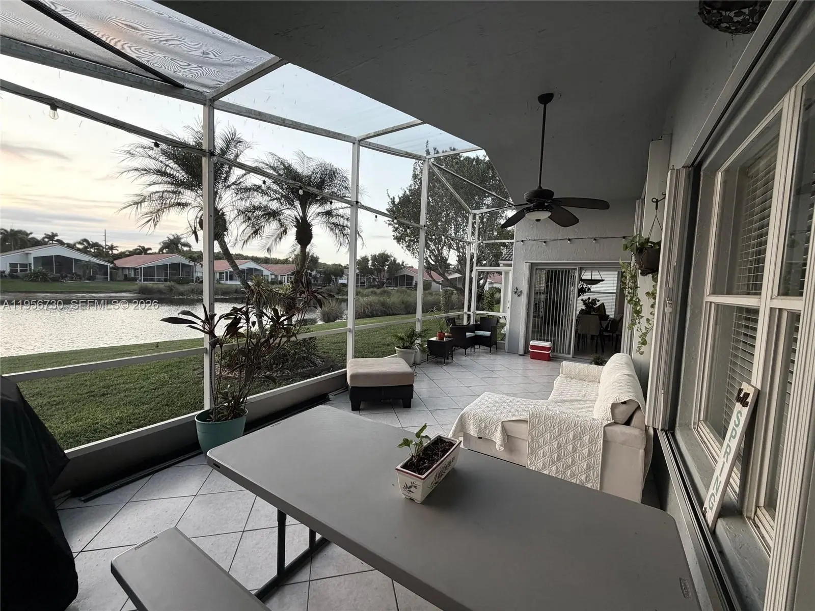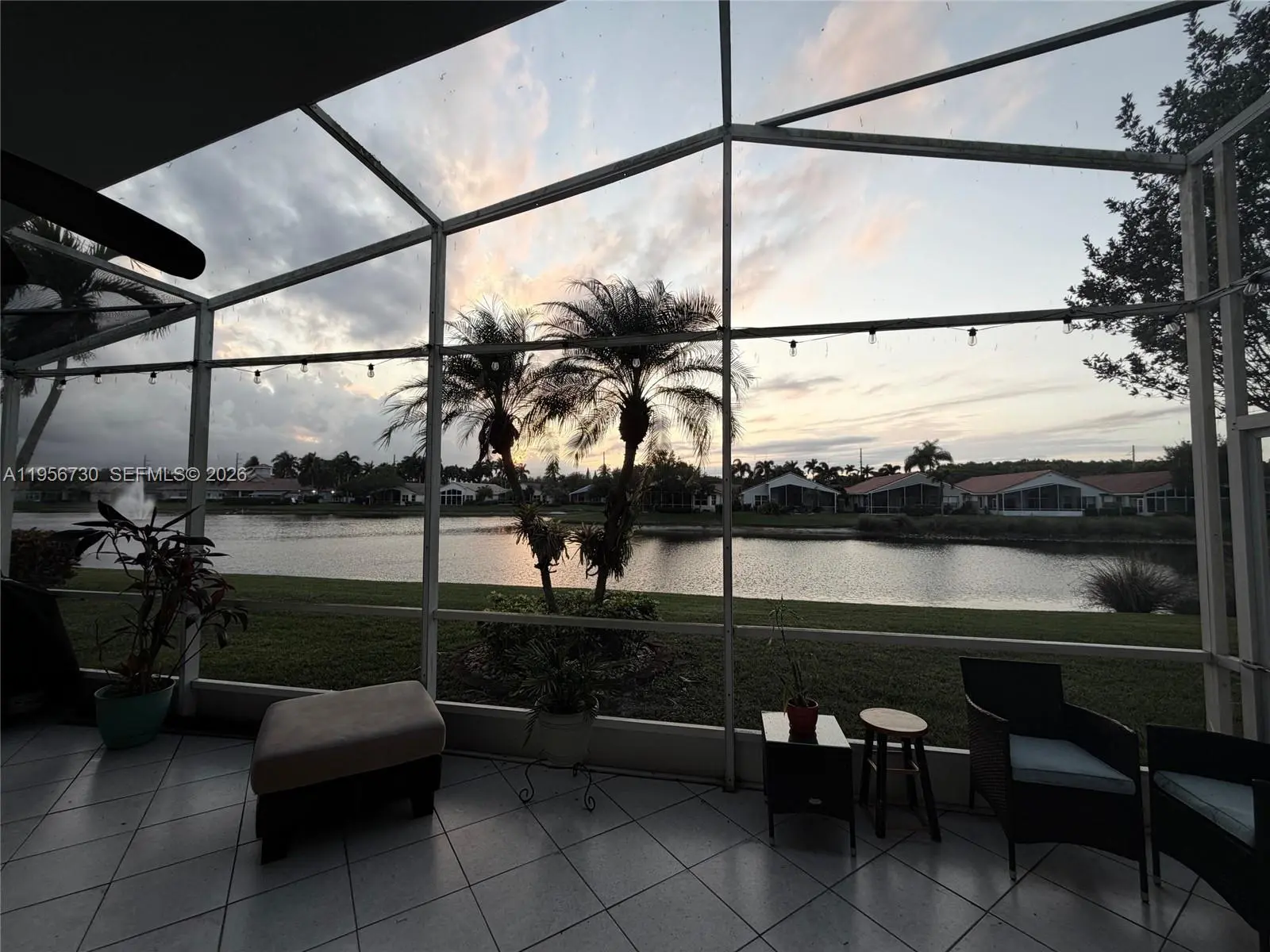 Welcome to this beautiful lakeside retreat located in the tranquil, gated community of Grove Isle. This spacious home features an open floor plan with vaulted ceilings, elegant tile flooring, and large windows that showcase breathtaking panoramic lake views. The renovated kitchen is equipped with Samsung stainless steel appliances, a center island, and a pantry—perfect for both everyday living and entertaining. The oversized primary suite offers a walk-in closet and a generous en-suite bathroom with dual sinks, a soaking tub, and a separate shower. Relax and unwind on the extended screened patio while enjoying peaceful water views. Additional features two-car garage, and accordion hurricane shutters. Grove Isle provides a lifestyle in a secure, gated setting, complete with a newly renovated clubhouse, swimming pool, tennis courts, and more. “55+ community with no age restriction for rentals.