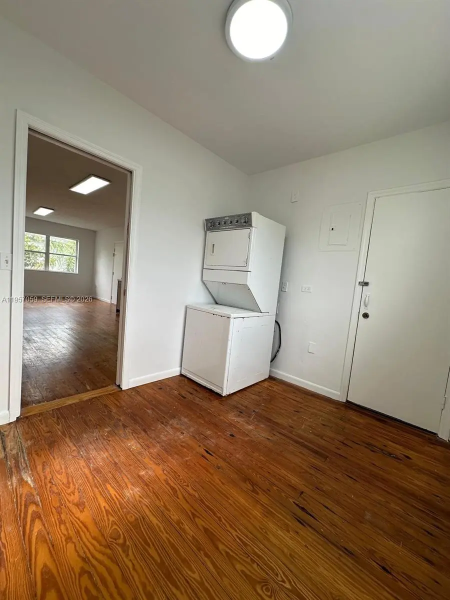 Spacious top corner unit facing the waterway with open canal views from both bedrooms. Features a wonderful floor plan with lots of natural light and Dade county pine wood floors throughout. A 2/2 with a small den, two walking in closets, open kitchen just remodeled, accordion hurricane shutters. Walk downstairs to water front pool patio, BBQ area and bike storage. There are 10 guest parking spaces in front of the central building to be used by the residents, first come/first serve and plenty street parking spaces. Individual washer/dryer. Unbeatable price! Driving Directions: