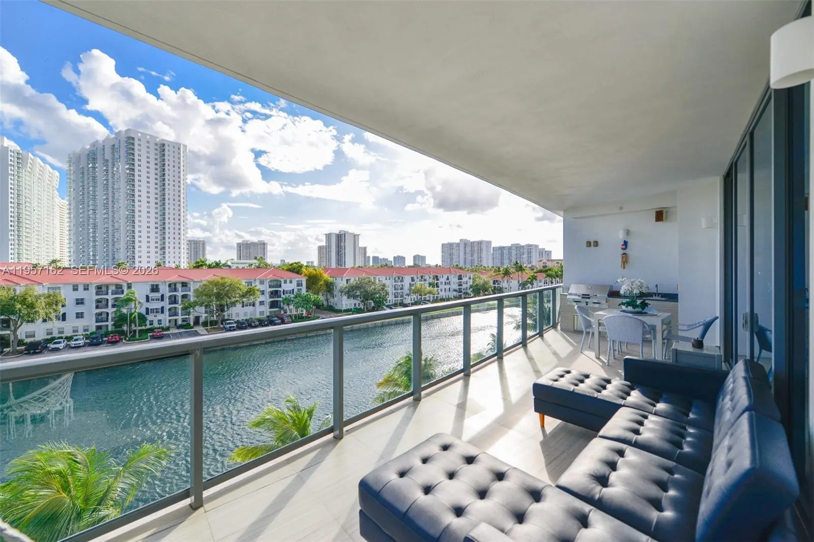Designed by architect Carlo Ott, Echo Aventura offers privacy & comfort with private elevators and oversized balcony terraces with gas grills for outdoor entertainment. It features 3 bedrooms, 4,5 bathrooms, a maid’s quarters, and custom walk-in closets. This unit is ready for move-in and features porcelain floors and an upgraded kitchen with new countertops. Amenities include an attended waterfront pool, valet service, a fitness center, a spa, and a coffee bar.