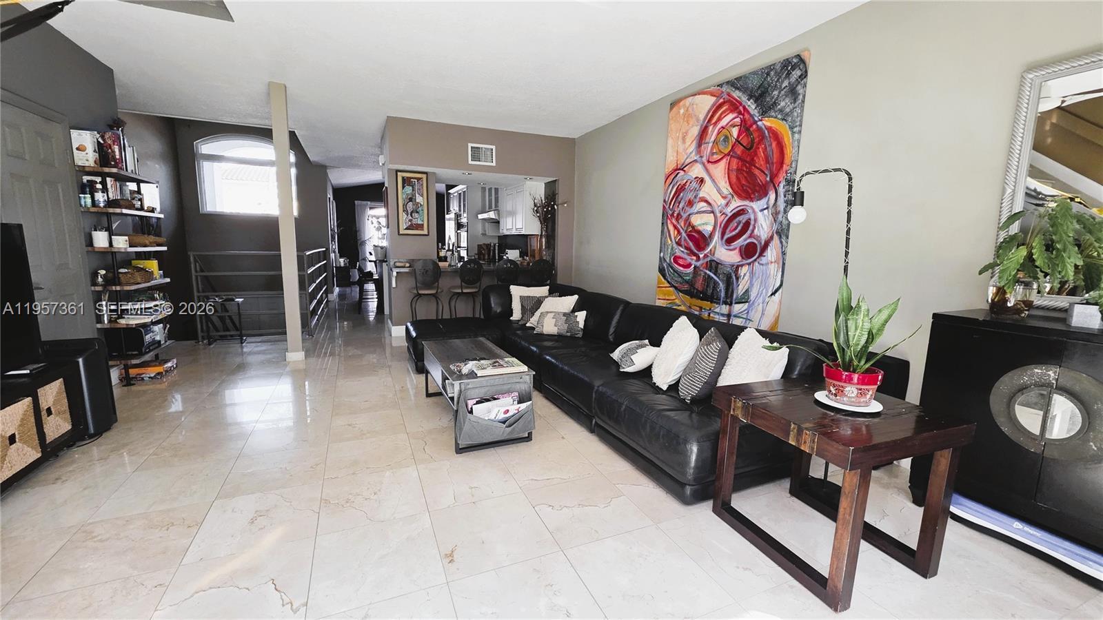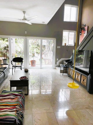Gorgeous and fully updated 3-bedroom, 2.5-bathroom home with direct lake views, located in the highly desirable Hammocks community. This unique lake view three-story townhouse features a one-car garage and impact windows, marble floors throughout. The first floor offers a spacious primary suite with a sitting area and a beautifully updated primary bathroom featuring dual sinks and a shower. The second floor showcases an open-concept living and dining area, an updated kitchen, and elegant marble floors, along with both front and back balconies overlooking the patio and the lake—perfect for relaxing or entertaining. The third floor includes two additional bedrooms and a versatile open space ideal for a studio, office, or den. Enjoy a good-sized fenced patio with a porch and terrace, ideal for outdoor living. The Hammocks community offers resort-style amenities, including a large lake with a 5-mile walking and biking trail, small beach areas, swimming pools, tennis courts, and a gym. A must-see home—you will absolutely love it!