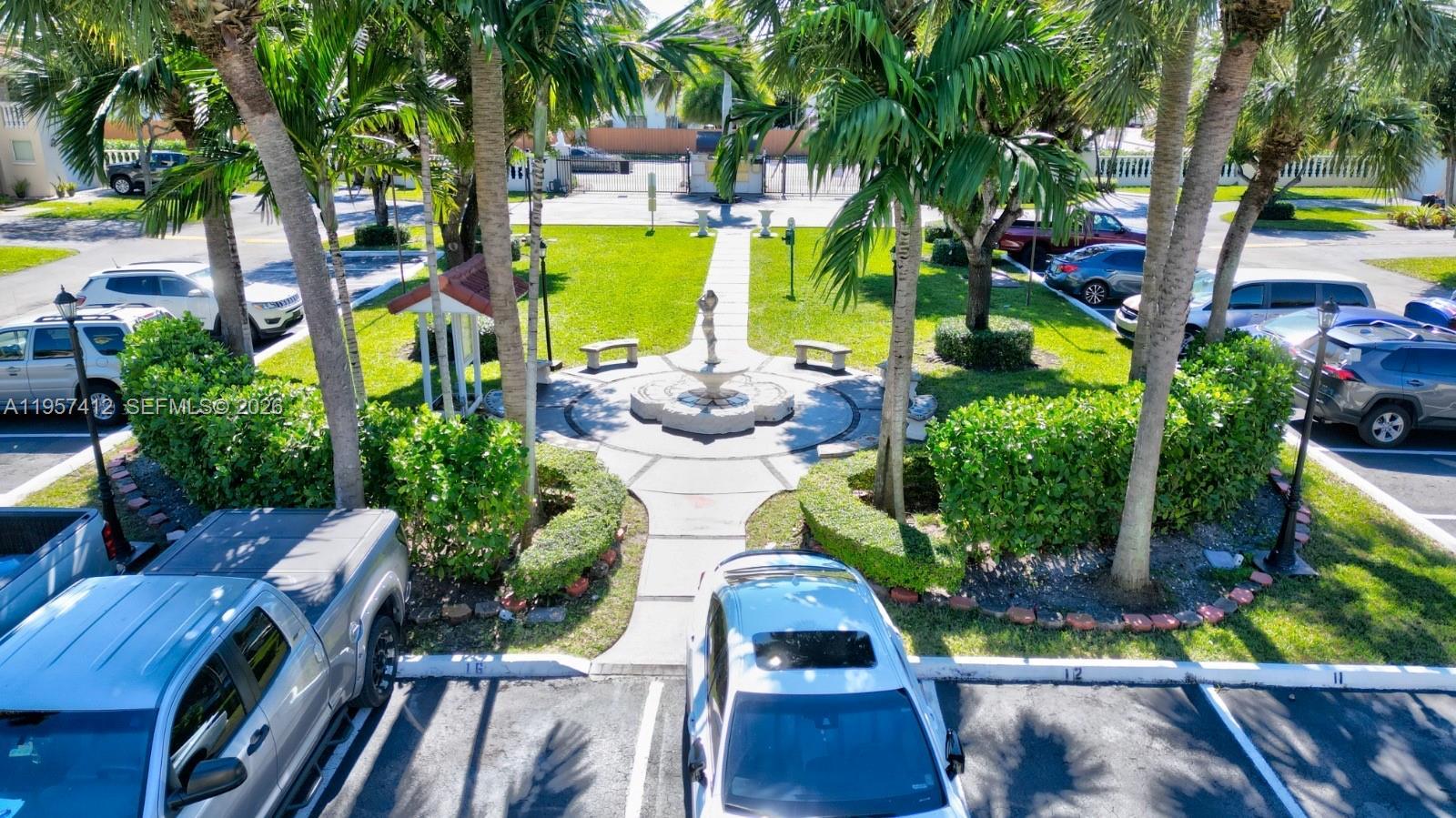 Lovely 3bed/2.5bath townhome in a gated community near Metro Zoo. Featuring tile floors downstairs, new laminate floors upstairs, open kitchen + converted garage great for office, playroom or additional entertaining. All3bedrooms are upstairs w/ very spacious master bedroom w/open balcony. Both bathrooms are finished w/tumbled marble. Outside are a covered terrace and communal park for residents in center of community. Unit has driveway parking plus 1 assigned space.