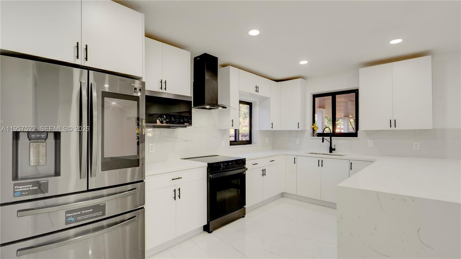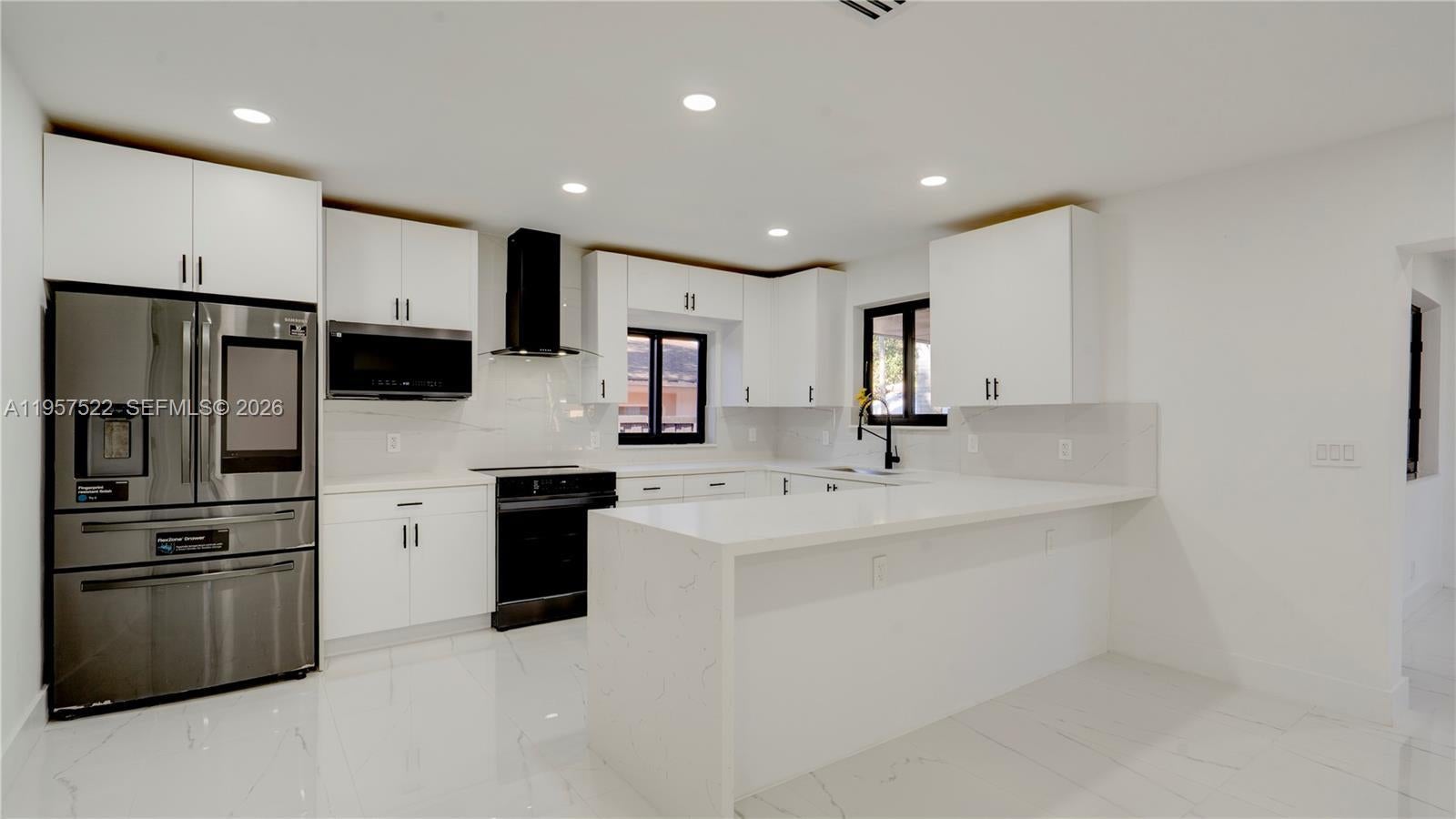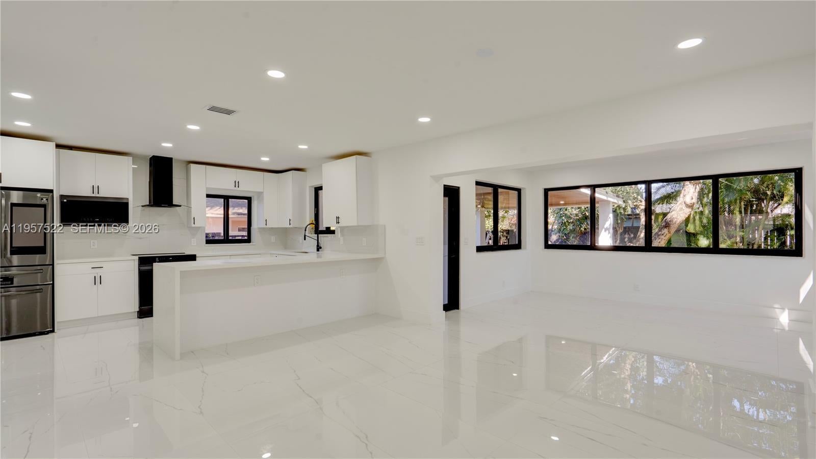 This move-in ready 3BR/2BA home was designed with family living in mind. The split-bedroom layout offers privacy for all, with a spacious primary suite set apart featuring a large bathroom with double sinks & a beautiful modern shower. Enjoy a generous living & dining area + a versatile spare room ideal for a family room, playroom, home office, or study. The modern kitchen showcases brand-new cabinets & stylish countertops. Additional highlights include a large laundry room with washer and dryer hookups. New electric water heater, new sprinkler system, and New impact windows and doors throughout. Relax or entertain in the covered patio with recessed lighting perfect for BBQs and gatherings with family and friends. A wonderful place to call home, just beautiful remodeled with permits.