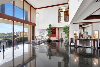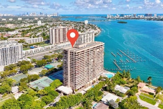 Loft style two-story corner Penthouse with 20' ceilings. Spacious first floor has living room, dining room, eat in kitchen, laundry room, third bedroom / theatre room and full bath. Details include 20' mirrored Art Deco fireplace and wet bar. The perfect space for entertaining! Huge primary suite on the second floor has a large walk in closet and a marble mirrored bathroom that belongs to a next level of opulence! Balconies on both levels offer beautiful views of Biscayne Bay. Two assigned parking spaces, newly renovated lobby, gym, club room, tennis, pool with jacuzzi. Seller has paid current special assessment. Owner financing available!
