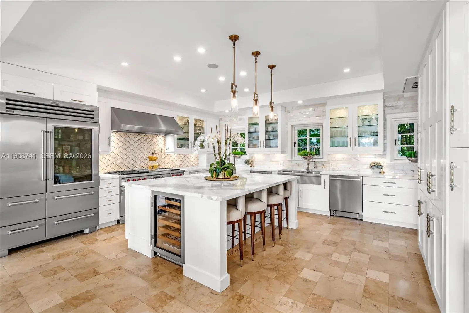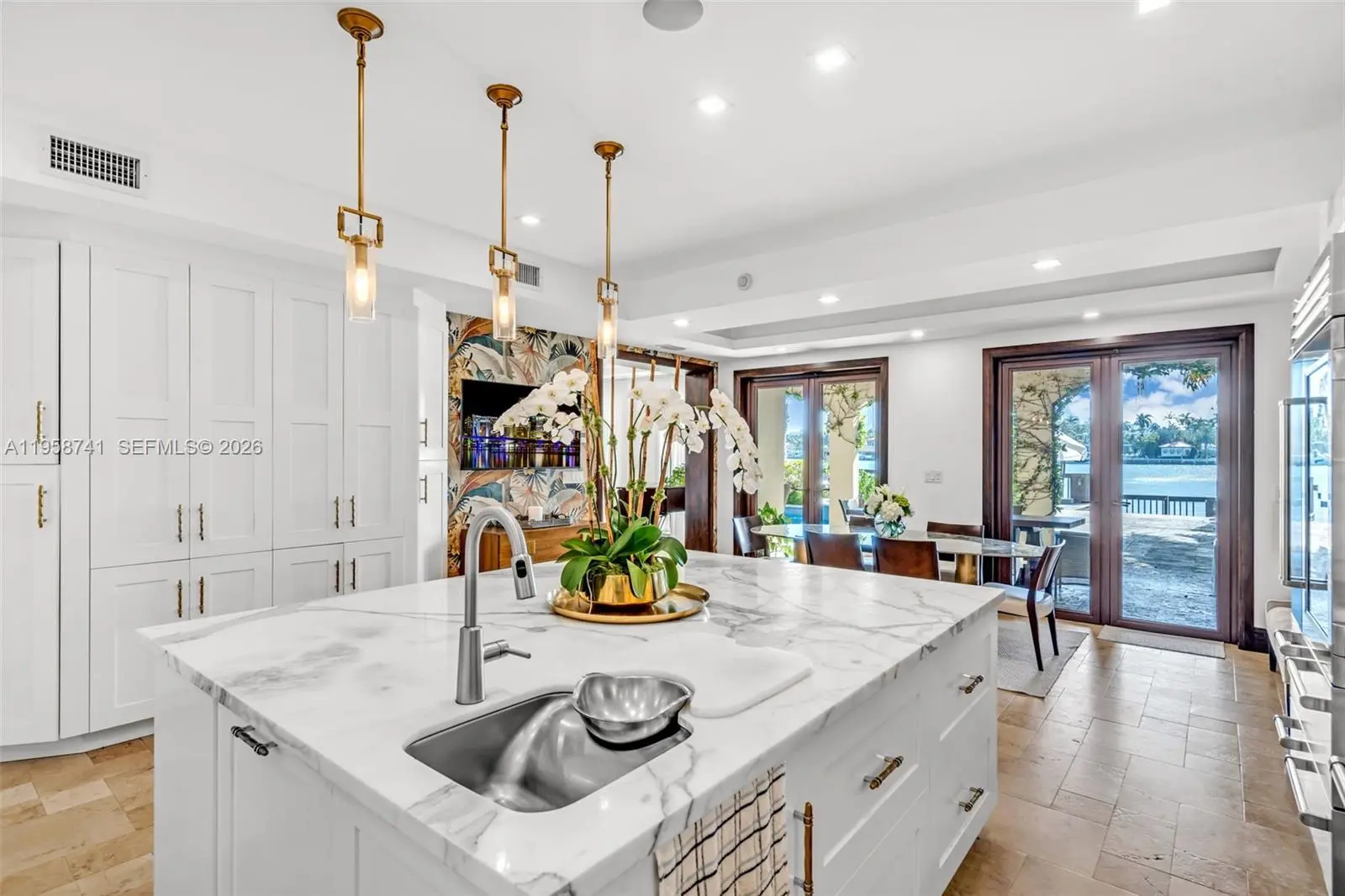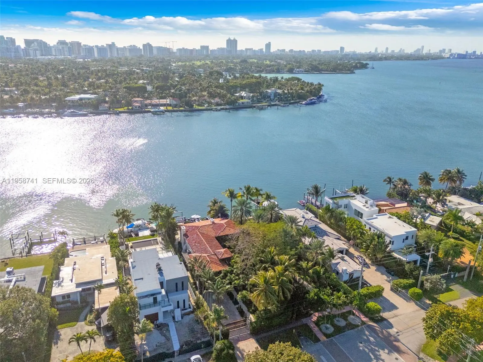Welcome to this spectacular 5 bedroom, 5 1/2 bathroom private tropical oasis on over 65 feet of open Bay with a 45 foot dock. Live your best indoor/outdoor luxury lifestyle with French doors opening up to beautiful terraces throughout this renovated Mediterranean estate. This incredible home is perfect for entertaining with a gorgeous family room and wet bar overlooking the Bay as well as an incredible eat in chef's kitchen with 60" Wolf Duel Stove with French Top, 45" Subzero refrigerator/freezer, 36" Hoshizaki ice maker, Subzero wine refrigerator, Wolf warming drawer and stunning marble island. The Elan Smart Home is surrounded by 8 foot privacy wall, Hikvision cameras as well as mature lush foliage that creates a secluded dream home. Come see this one of a kind waterfront property. You do not want to miss it!