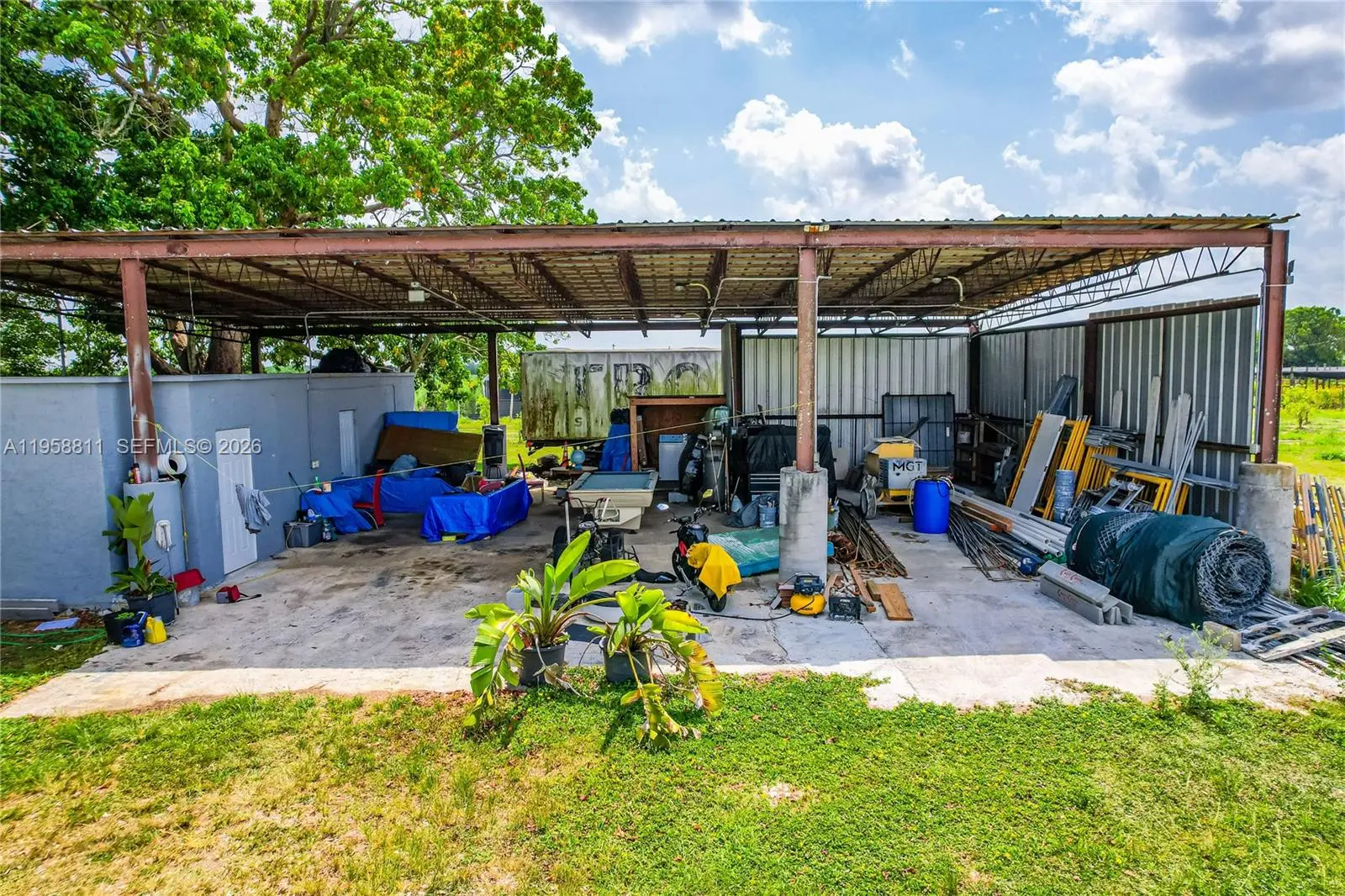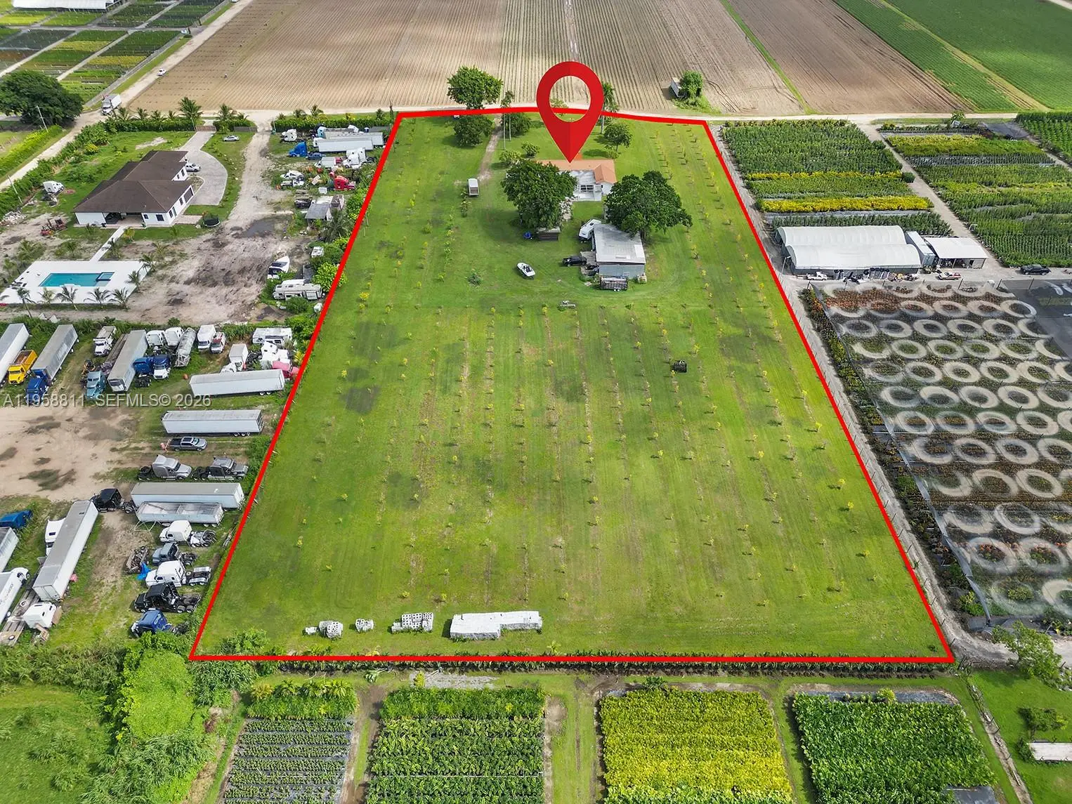 Peaceful and Private nearly 5 acres of land in the heart of Redlands, most of which is a lime grove. This expansive parcel offers endless potential and true agricultural charm, complete with a spacious 40x60 pole barn ideal for equipment, storage, or future projects. An RV pad with sewer and electrical hookups adds additional functionality to the land. Enjoy peaceful country living surrounded by nature, with minimal light pollution allowing for breathtaking night skies and stargazing. This quiet retreat is just a short drive from Miami’s vibrant lifestyle and the scenic route to the Florida Keys—offering the perfect balance of seclusion and convenience. The sale of the land includes a custom-built 1980s home with 4 bedrooms and 2 bathrooms. Recent upgrades feature a newer metal roof, impact windows and doors, and two new A/C units. The open-concept living area includes a spacious kitchen flowing into the main living spaces and a fireplace. Motivated seller. Schedule your showing today.