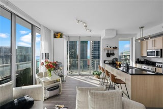 Highly sought after Penthouse corner unit at Axis Brickell. Floor-to-Ceiling impact glass providing lots of natural light, wrap around balcony with views of north, west, south, and east of the city & the bay, open kitchen with stainless steel appliances, washer/Dryer in the unit. 2 assigned parking included!!! AMENITIES: 24/7 security/front desk, resort style pool, steam room, jacuzzi, fitness center, kids play room, business center, gathering areas & billiard room. Steps from lots of Brickell City Center, restaurants, super-markets, banks, coffee shops, 10 min drive to the airport and 15 min drive to the beach. Best unit in Axis in term of views.