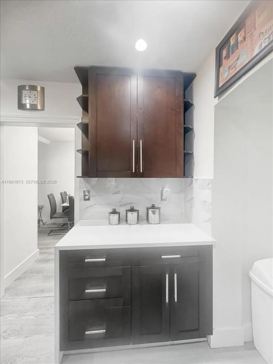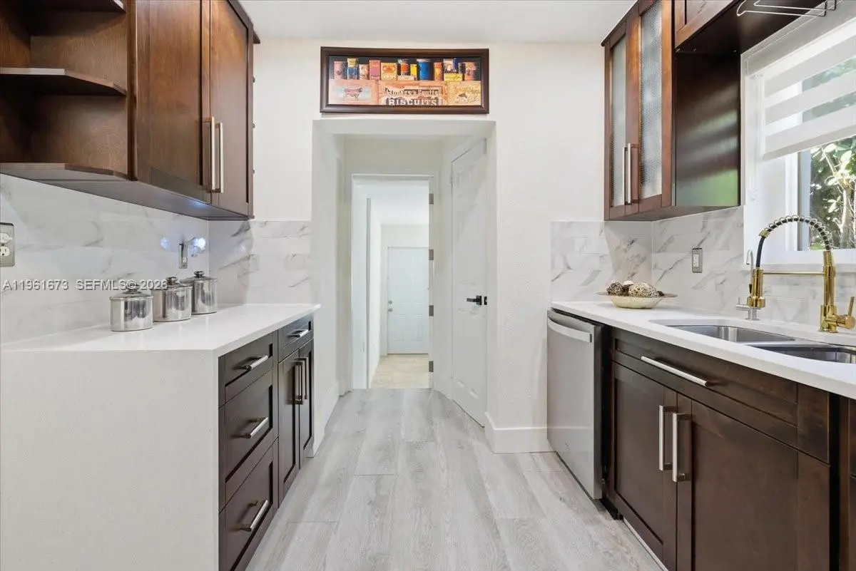 Welcome to your dream home- one block from Coral Way! This freshly painted outside stunning Home in between the Roads, Coconut Grove and Coral Gables features: 3 bedrooms plus spacious Den or Office (not shown in pictures), 2.5 bathrooms total, converted garage offers a private one bedroom, one-bathroom suite- ideal as a flex space, or entertainment room. Step inside and be greeted with decorative walls, sliding barn-style door for added privacy at the bedroom entrance. The gleaming remodeled expresso wood kitchen cabinets with stainless steel appliances, and white quartz countertops; complemented by beautiful vinyl wood flooring throughout and original wood flooring in the bedrooms. The 2024 new roof and impact windows & doors provide peace of mind and added security. Enjoy the convenience of a water softener with salt system and reverse osmosis for clean and purified water. The private gated entrance ensures privacy and security, while the oasis landscaping & artificial grass in the front and backyard create a low-maintenance outdoor retreat. Relax beneath the elegant outdoor pergola perfect for entertaining guests or unwinding after a long day. This corner home provides ample space to have a small boat or built your customized pool. Don't miss this incredible opportunity to make this exquisite property your own & experience the very best of Miami living. Ideally located within walking distance to restaurants, shops, gas station & more.Convenience is truly at your doorstep.