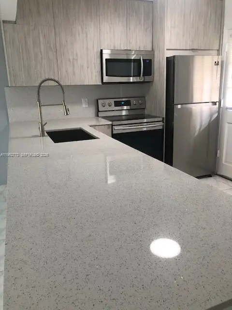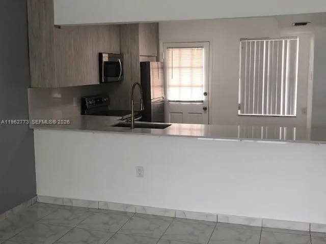 Beautiful 1/1.5 condo unit in North Miami Beach. Totally remodeled, opened kitchen with Quartz countertop and new cabinets. Huge master bedroom with plenty of closets.Stainless steel appliances. New Lighting in the whole unit. Porcelain floors throughout the apartment. Great garden/pool view from balcony. Close to shopping centers, Aventura and the I95. Tenant in place until May 31st 2026 if your client is looking for an investment unit or he can move out at the end of lease. Building has installed a new roof and impact windows with no outstanding assesment.
