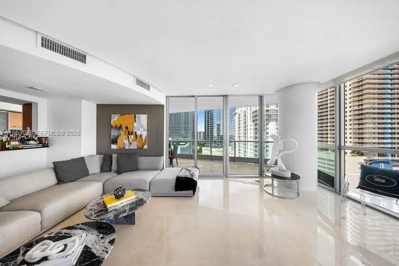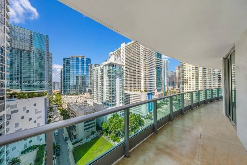 Stunning Corner unit with 180 degree exposure and wrap around terraces featuring unparalleled Bay and City views. This 2/2 - 1529 SQFT residence has bright natural light with large marble floors format throughout, eat-in kitchen, remodeled bathrooms, Built-in closets. One Assigned parking space and One parking with valet. Large storage under A/C. Nestled in the heart of Brickell, building features Panoramic pool area, Exercise club, Spa, rooftop recreational room. Close to everything Brickell Has to offer.