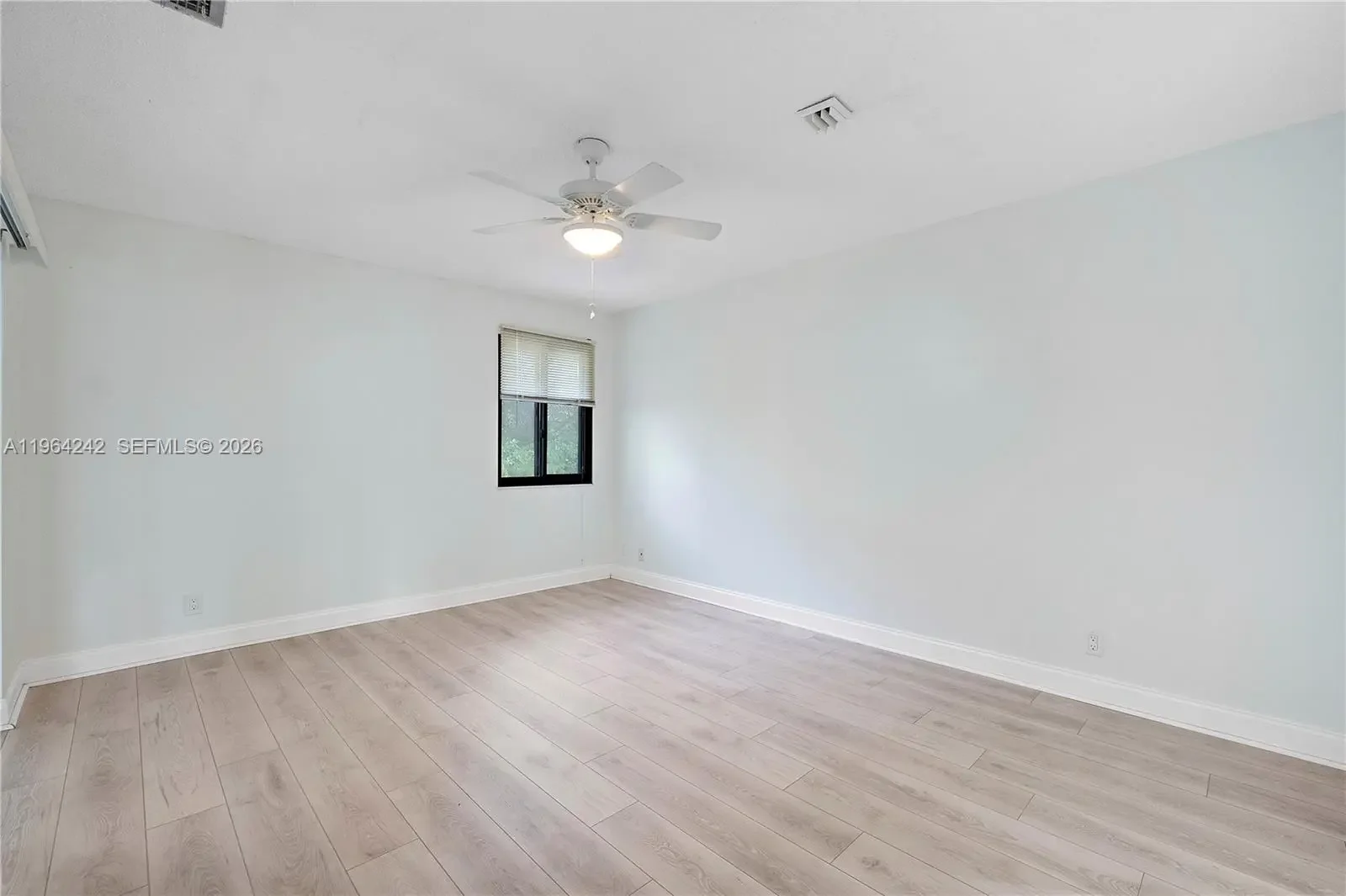 Beautifully updated 2-bedroom residence with an enclosed third room, perfect for a guest room, office, or flex space. Located in a safe and well-maintained community, this home offers lovely garden views and a charming private garden area to enjoy outdoor relaxation. The unit features high ceilings that create a bright and airy atmosphere and has been freshly painted throughout. Brand-new waterproof wood laminate flooring in a modern, trendy tone has been installed in the bedrooms and inside the closets, along with new flooring in both bedrooms. The spare room includes a brand-new custom closet. Bathrooms have been enhanced with new sinks, adding a fresh contemporary touch.Conveniently located near restaurants, shopping, and everyday essentials, this property combines comfort, style, and an excellent location.
