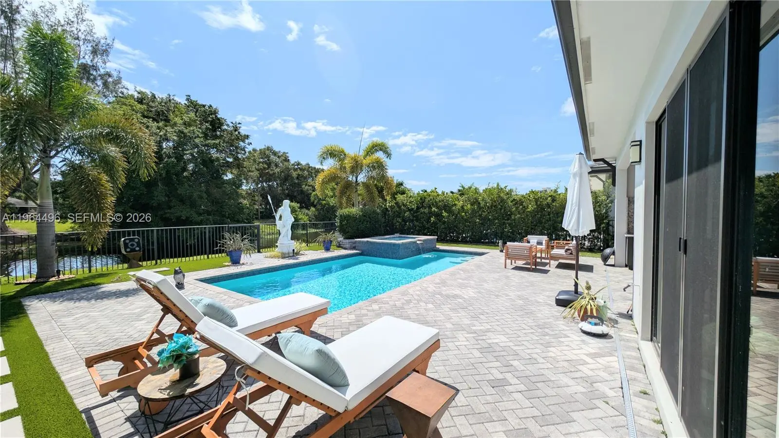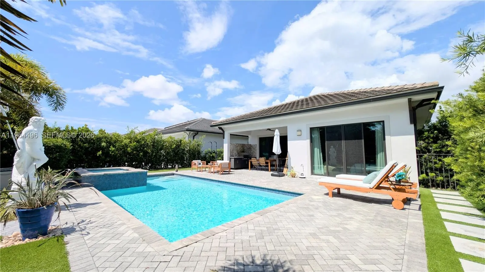 A rare opportunity within the gated Banyan Cay enclave of West Palm Beach. Built in 2020, this 3BR/3BA custom residence offers refined design, soaring ceilings, and bespoke finishes throughout. The primary suite opens directly to the private pool, creating a seamless indoor-outdoor living experience designed for both relaxation and entertaining. A tranquil backyard with pool & spa enhances the home’s private resort feel. With only a limited collection of residences in the community, this property offers true exclusivity—ideal as a distinguished seasonal retreat or full-time residence. Positioned beside Dutchman’s Pipe Golf Club, a Jack Nicklaus Signature Course, and moments from premier dining, shopping, and Palm Beach’s most desirable destinations.
